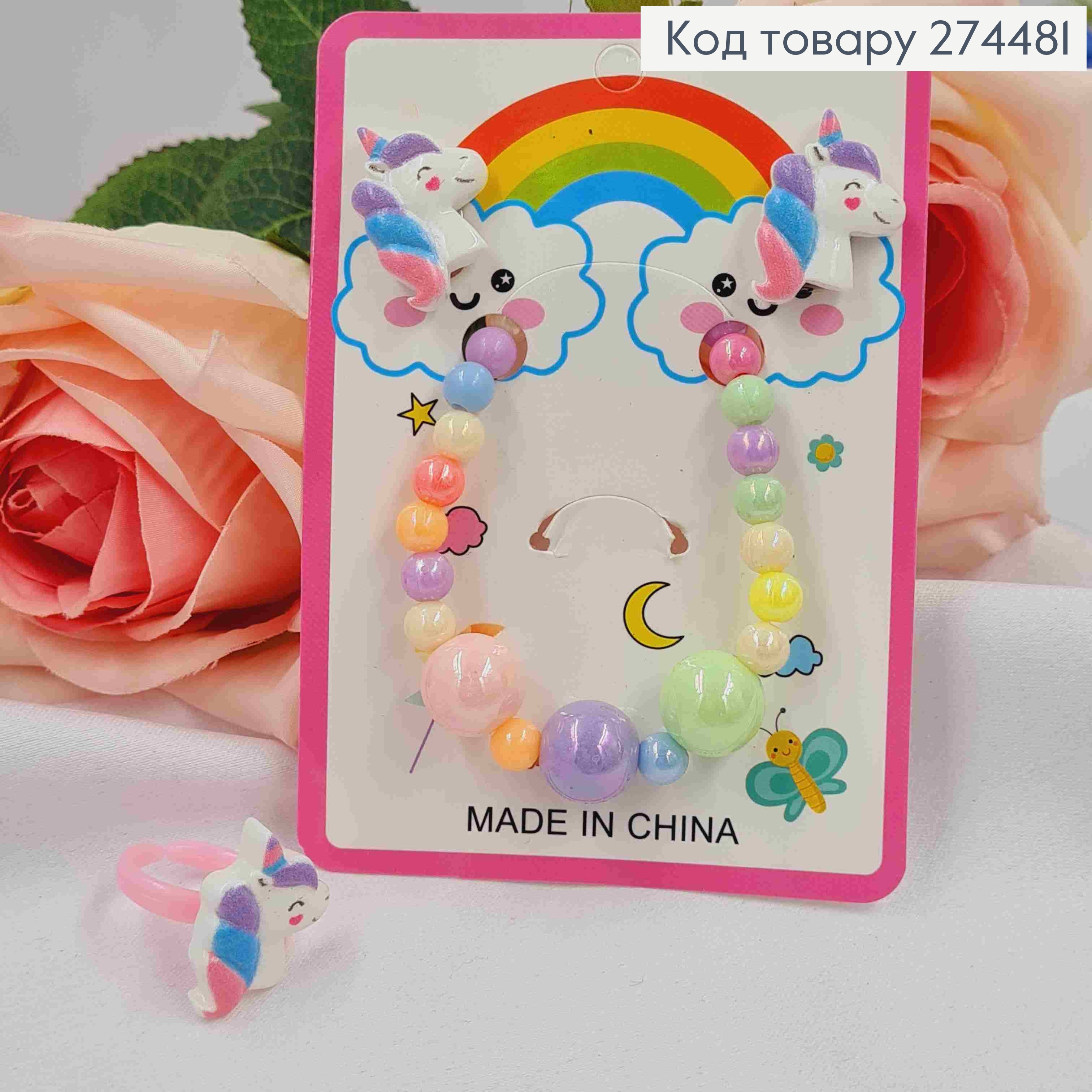 Набор детский: браслет, клипсы, колечко, "ЕДИНОРОГ"