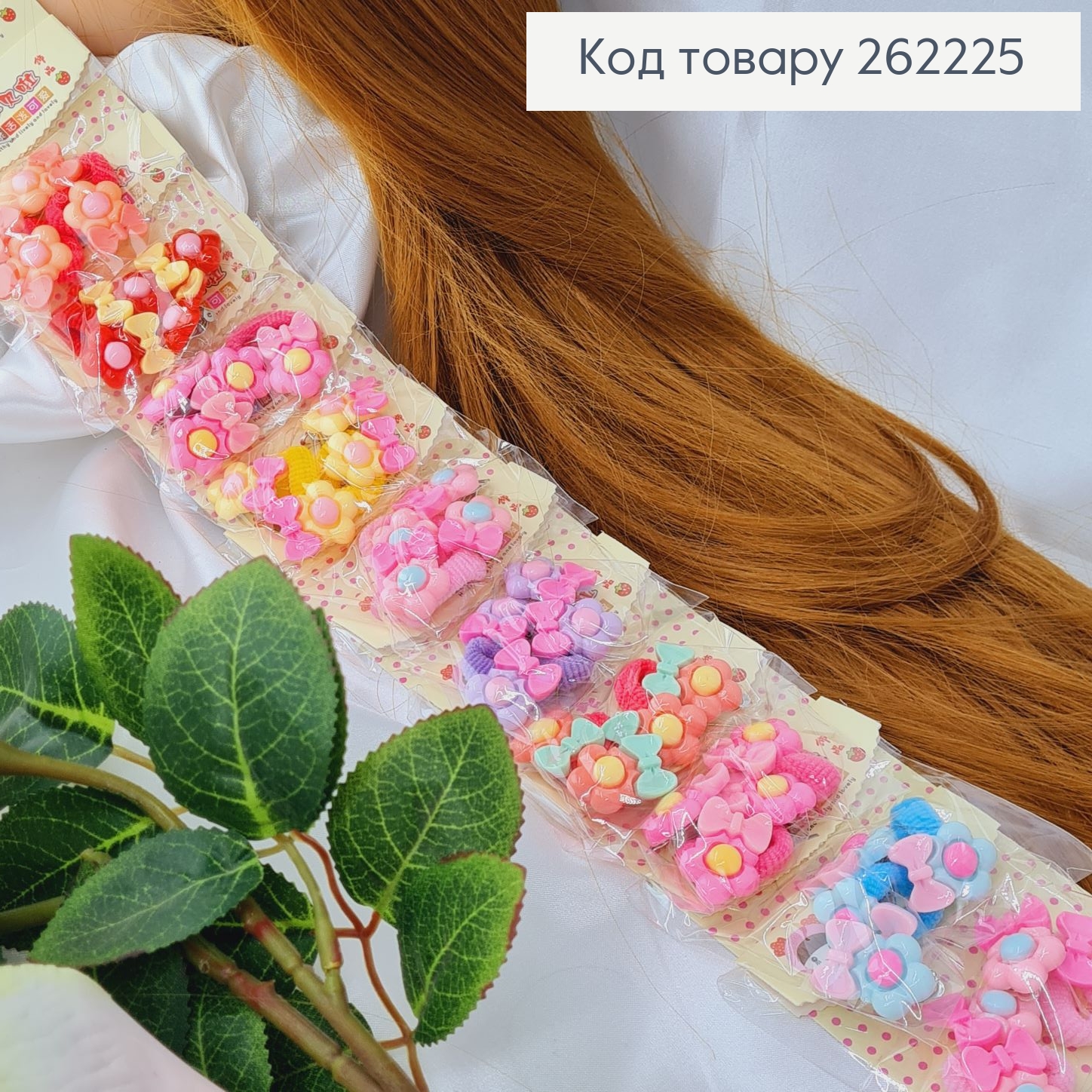 Набор детский Цветочек, резинки и клипсы 10пар, в ассорт.