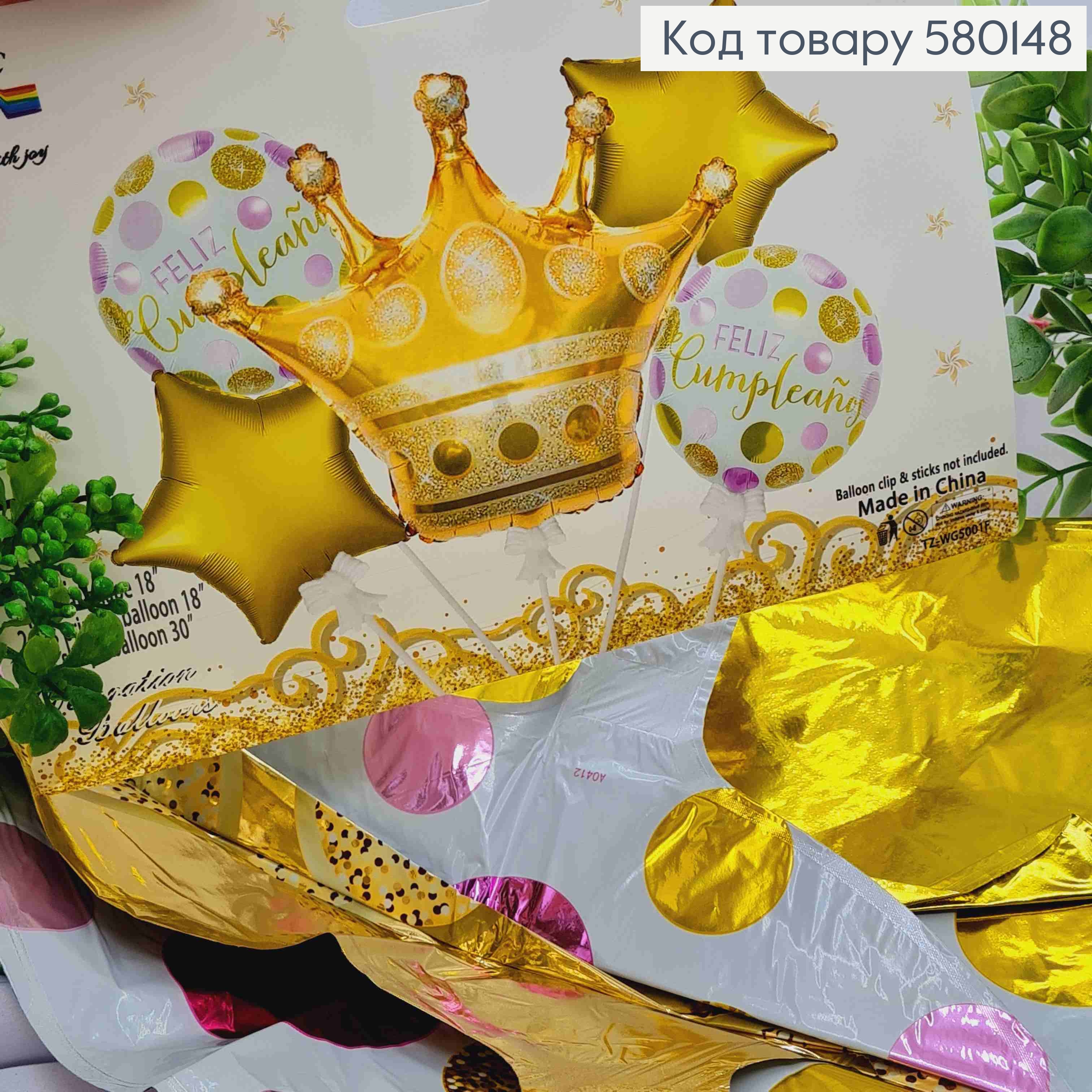 Набор фольгированных шаров, "КОРОНА", Звезды (2шт/18"), Корона (1шт/30''), Круглые (2шт/18")