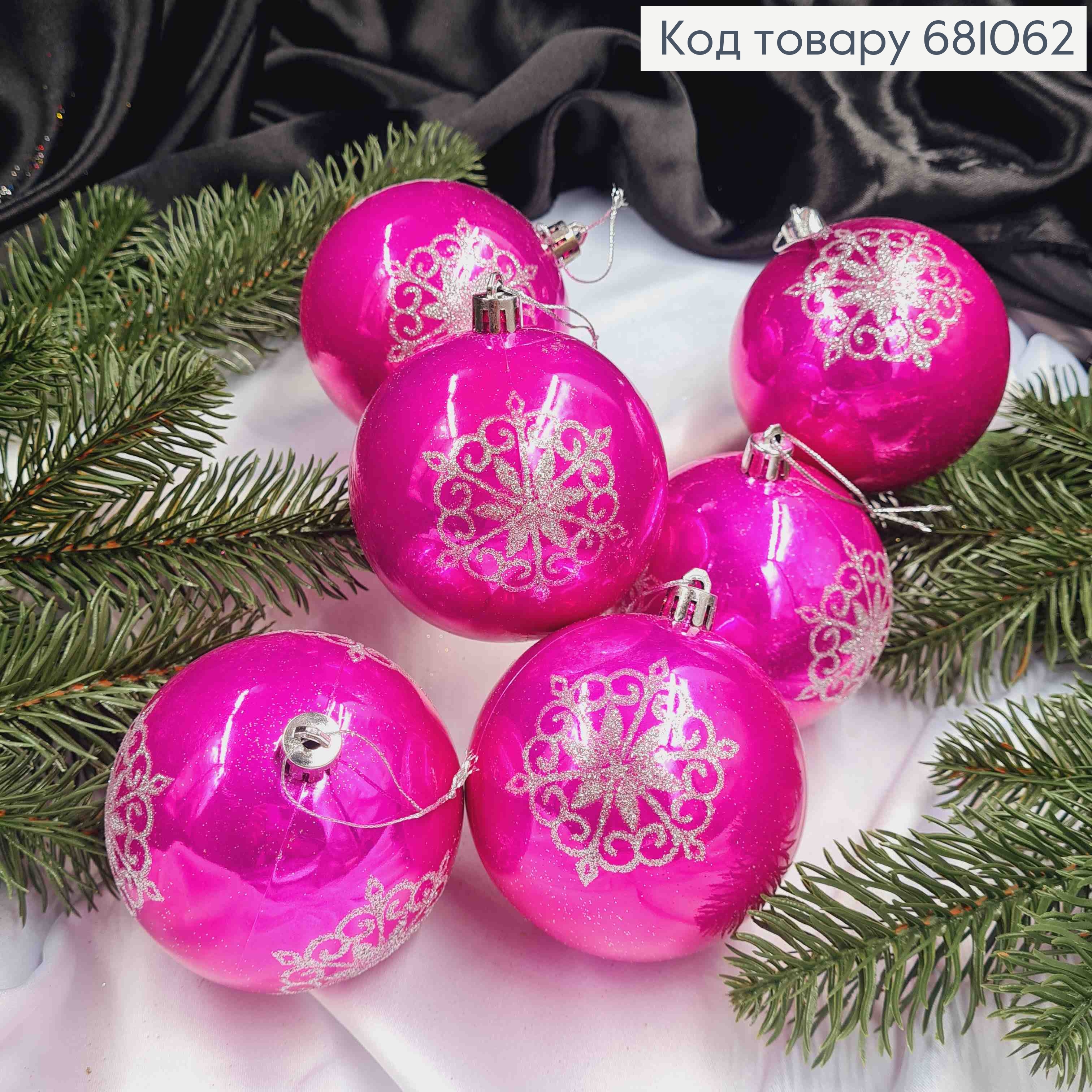 Набор игрушек 80 мм розовый со снежинкой Китай 6 шт.