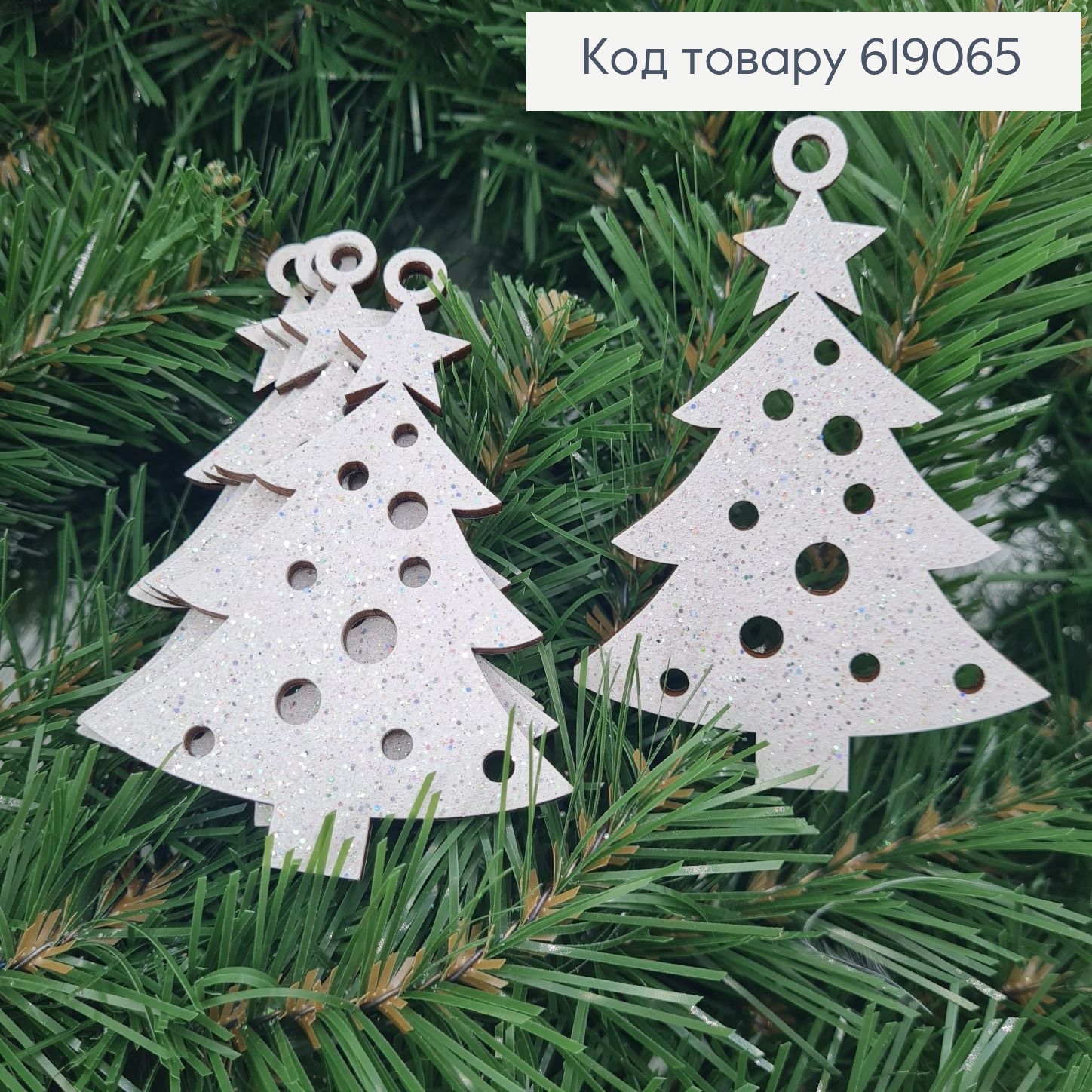 Набор игрушек деревянных Елка блеск 9,5*7 см см 5 шт/уп