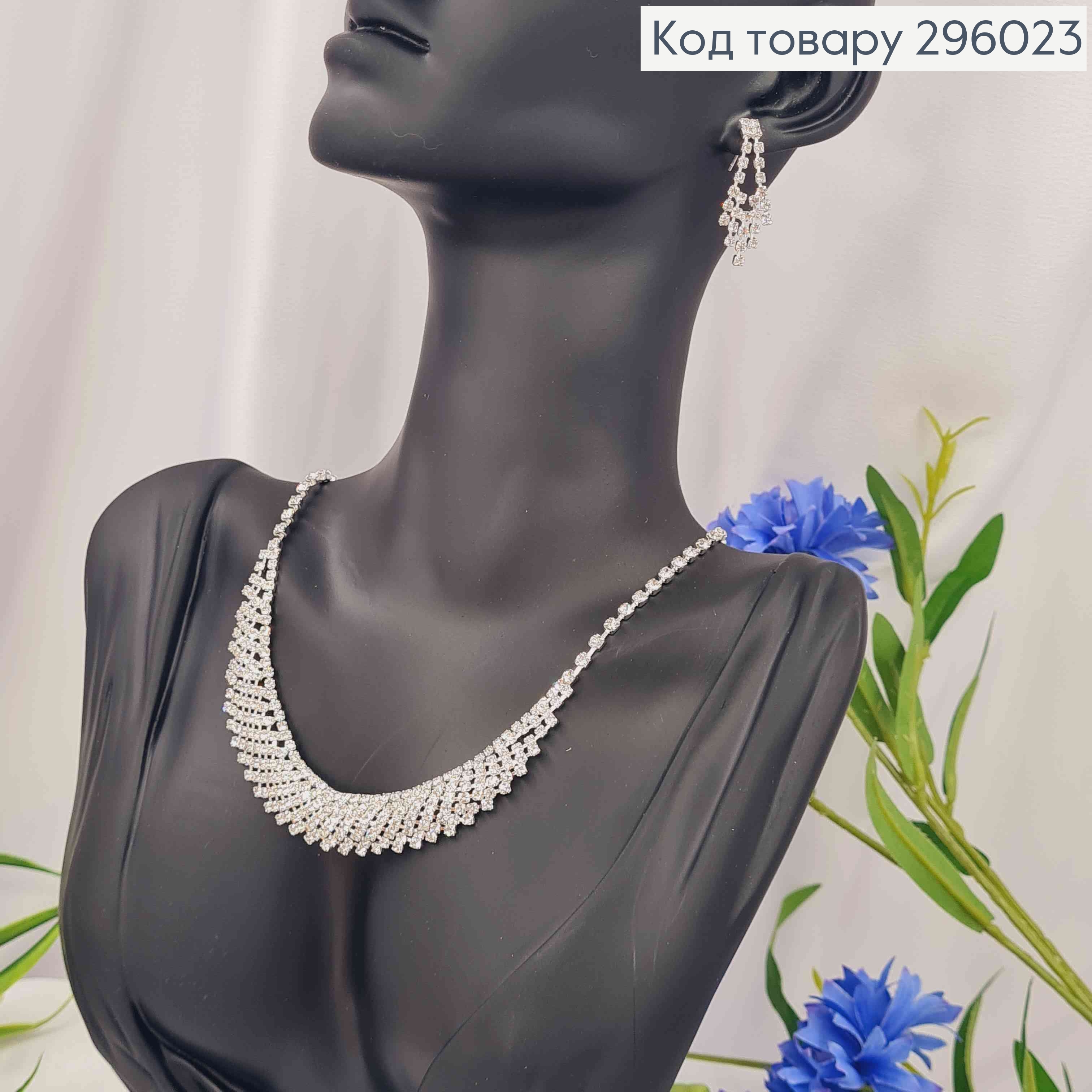 Набор: Колье и Серьги гвозди, с блестящими камнями, Серебряного цвета. 296029 фото