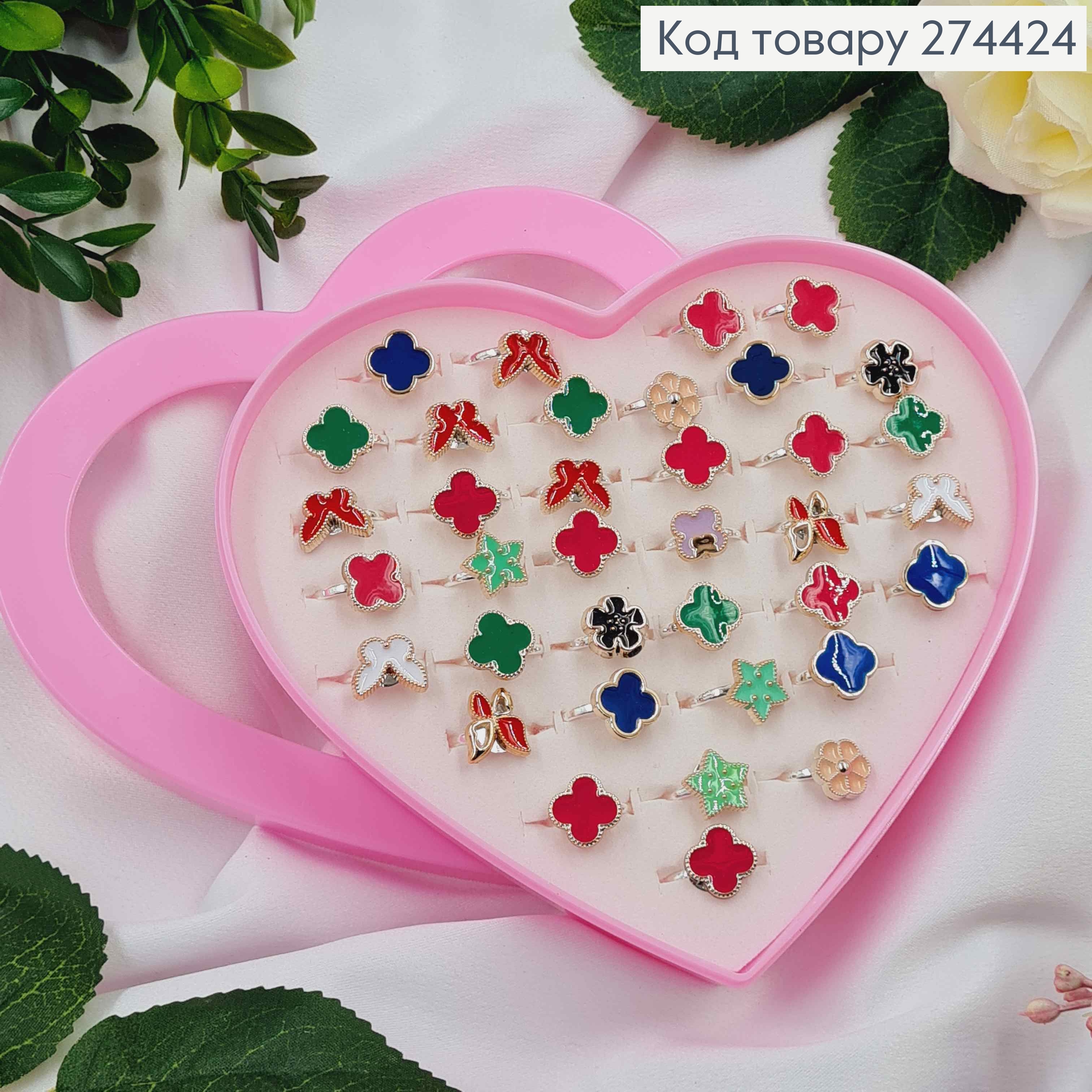 Набор колечек (36шт) "Цветочки", в ассортименте, в коробочке-сердечке 274593 фото