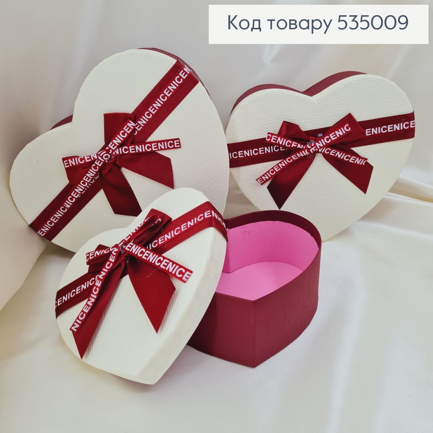 Набор коробок сердце 3шт бордовых с бантом 14х16х6см, 17х18х7 см, 20х21х9 см