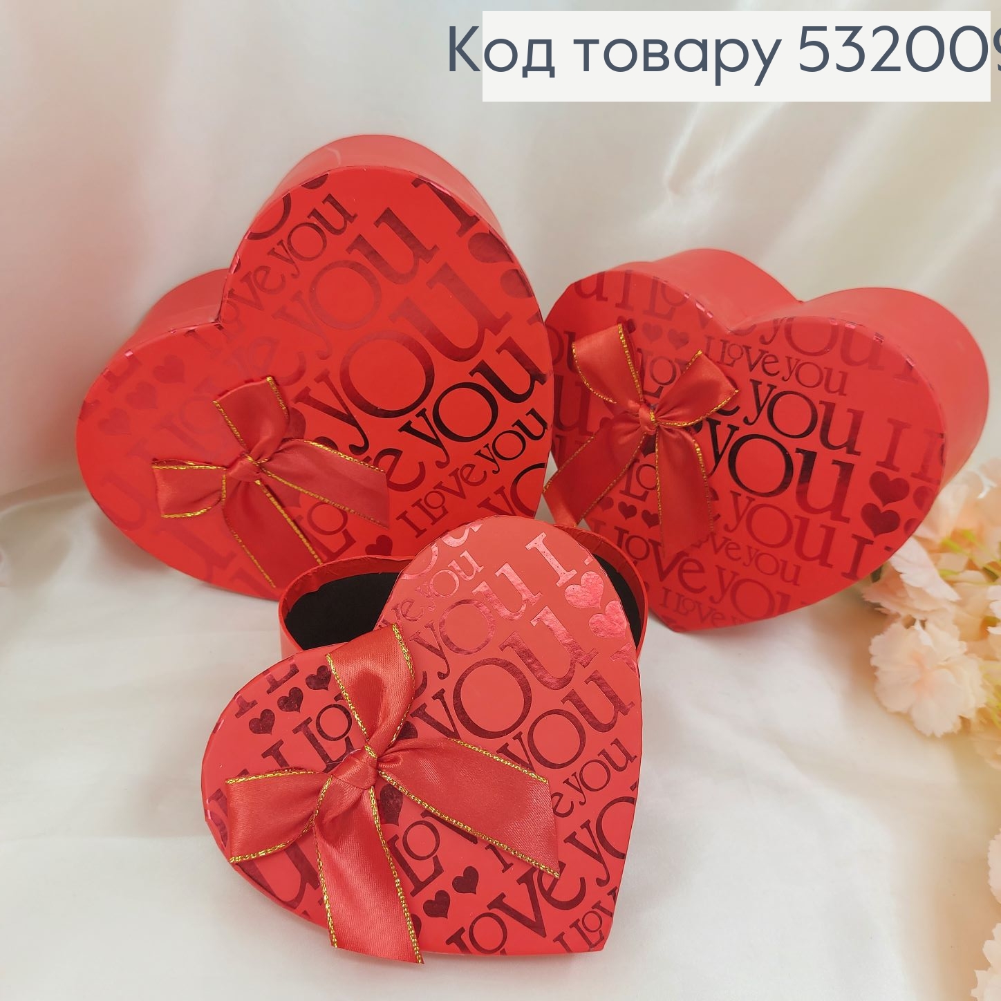 Набор коробок сердце 3шт красная с бантом 14х16х6см, 17х18х7 см, 20х21х9 см