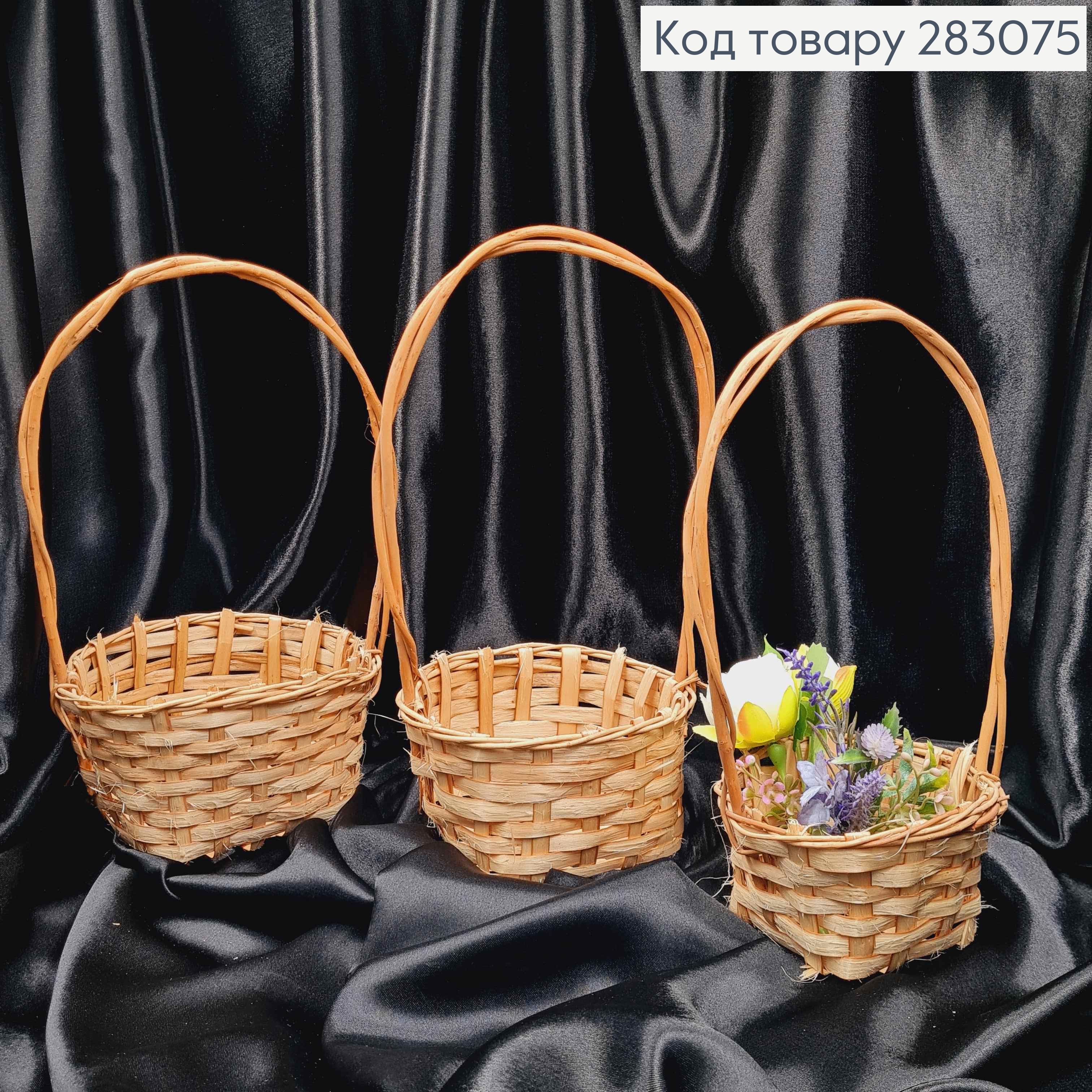 Корзина-Кашпо Плетеная, с подкладкой, КРУГЛАЯ с подвижной ручкой, 14*10см + ручка 11см 283150 фото