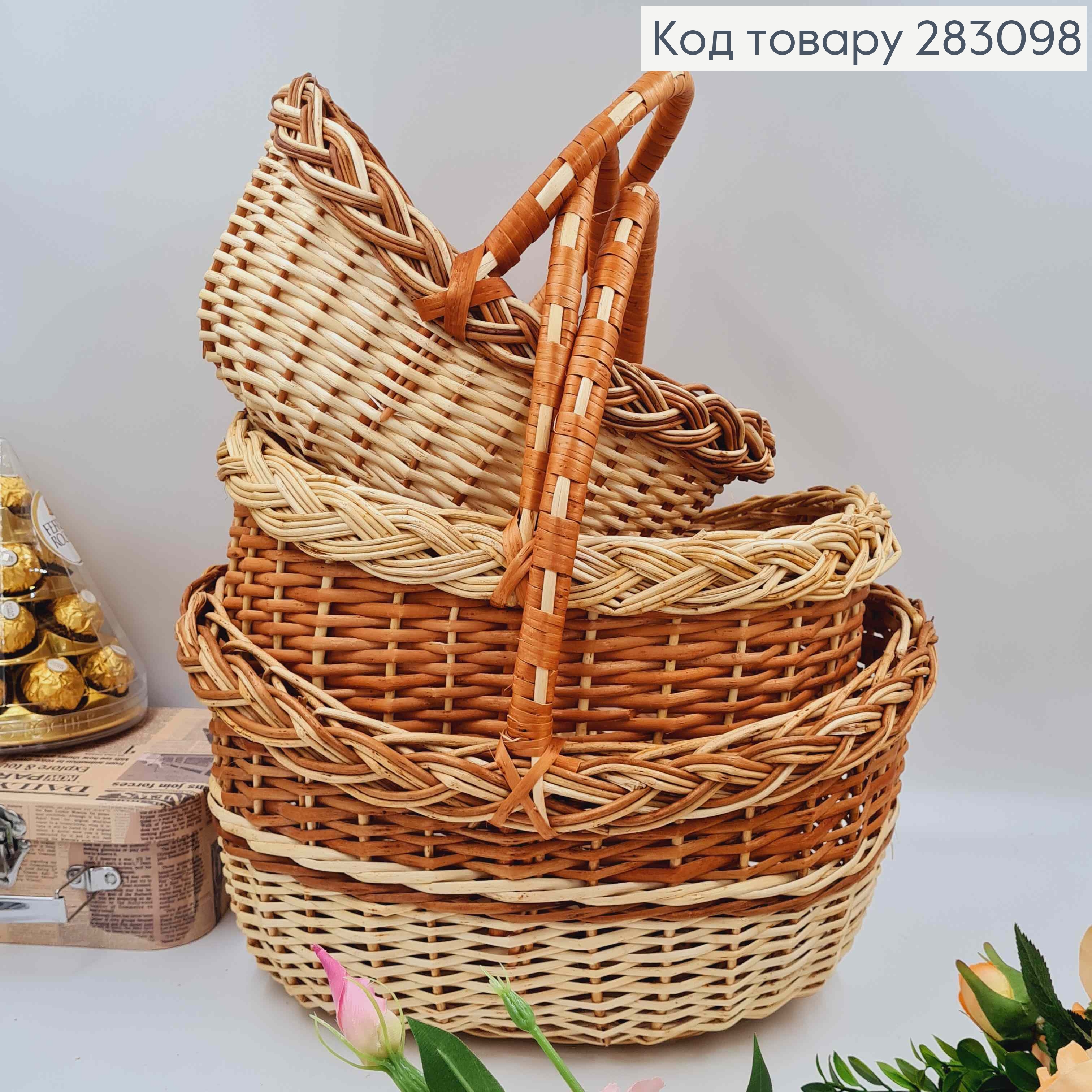 Набор корзин плетеных 3шт. ОВАЛЬНЫЕ (глубина 17см, 16см, 14см, + ручка 22см, 19см, 14см), УКРАИНА