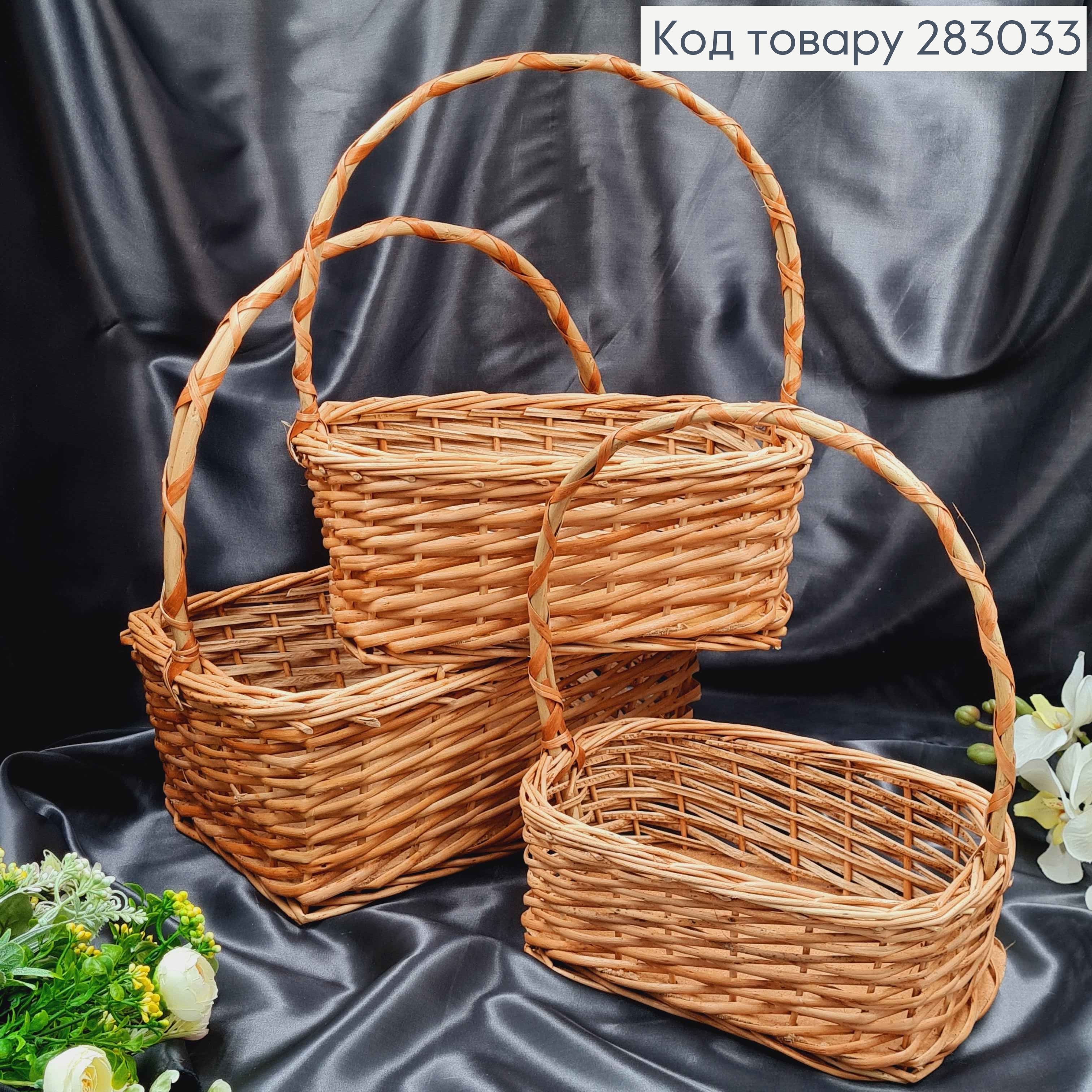 ¶Набор корзин плетеных 3шт. ПРЯМОУГОЛЬНЫХ (глубина 14см,11см, 9см + ручка 25см,24см,23см), УКРАИНА