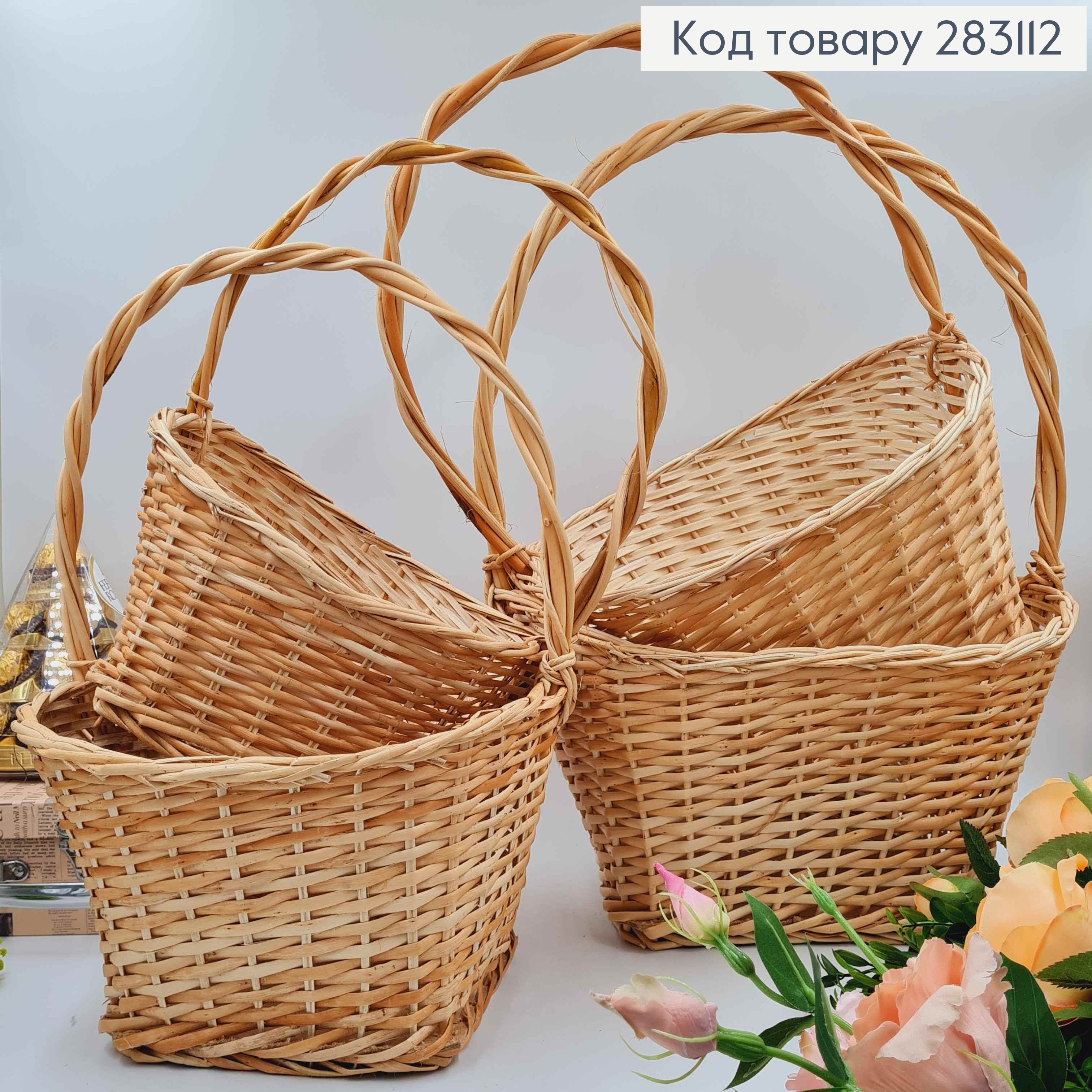 Корзина-кашпо плетеная, соломенная с Белым верхом и ручками, (дл.36см),(шир19см),(глуб17),(ручка13см) 283221 фото