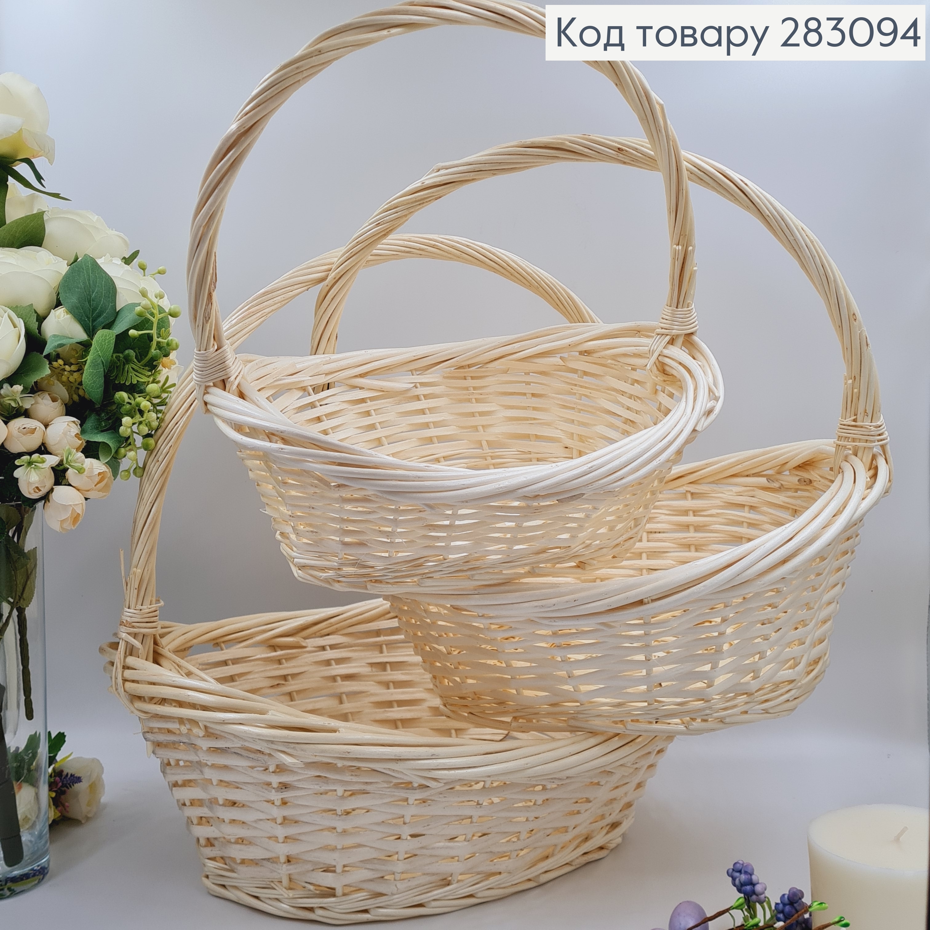 Набор корзин плетеных "Лодочка" 3шт ВЫБЕЛЕНЫХ (41*34*12, 33*27*12, 28*21*9см) УКРАИНА