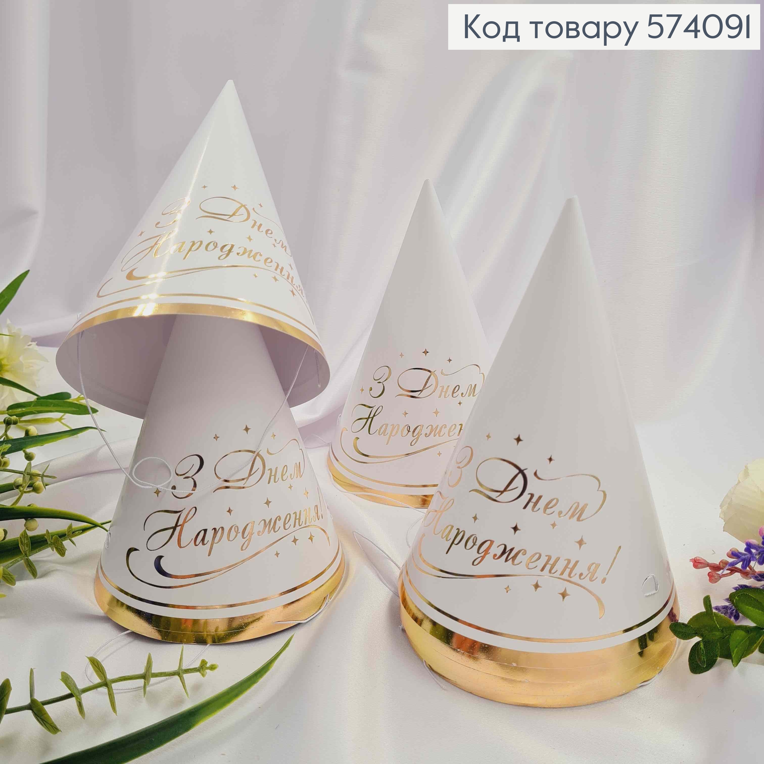 Набор праздничных колпачков, "С Днем Рождения", белого цвета с золотой надписью, 10шт/уп.