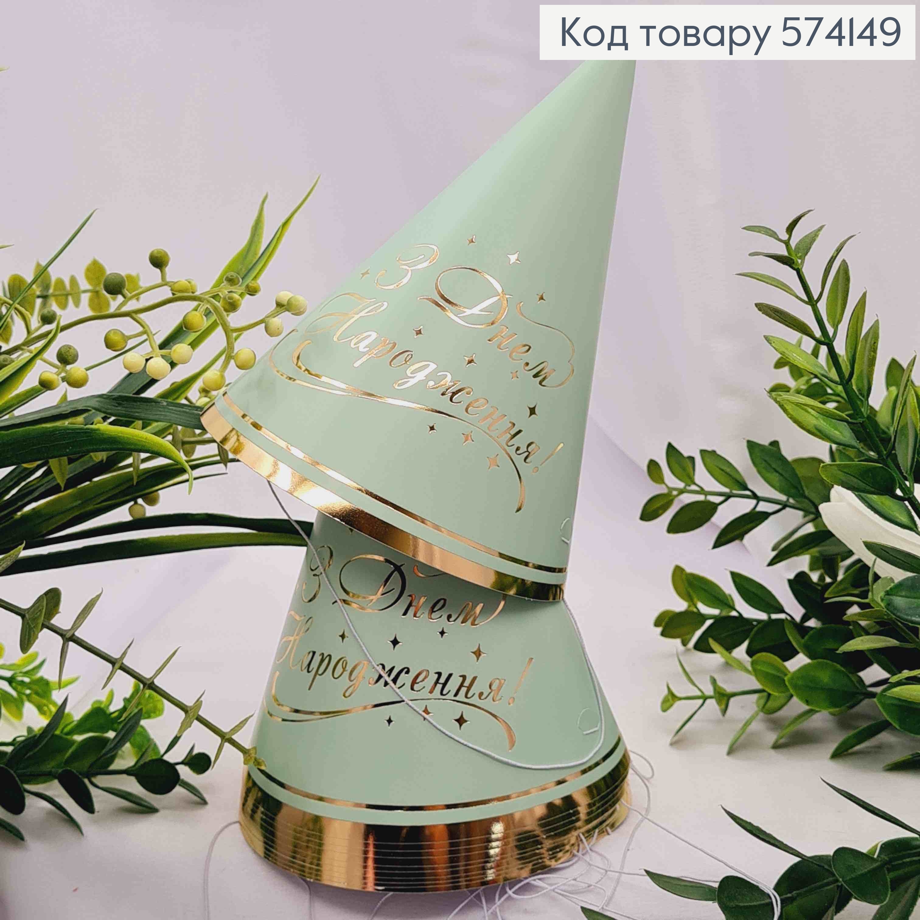 Набор Колпачков праздничных, "С Днем Рождения", Фисташкового цвета с золотой надписью, 10шт/уп