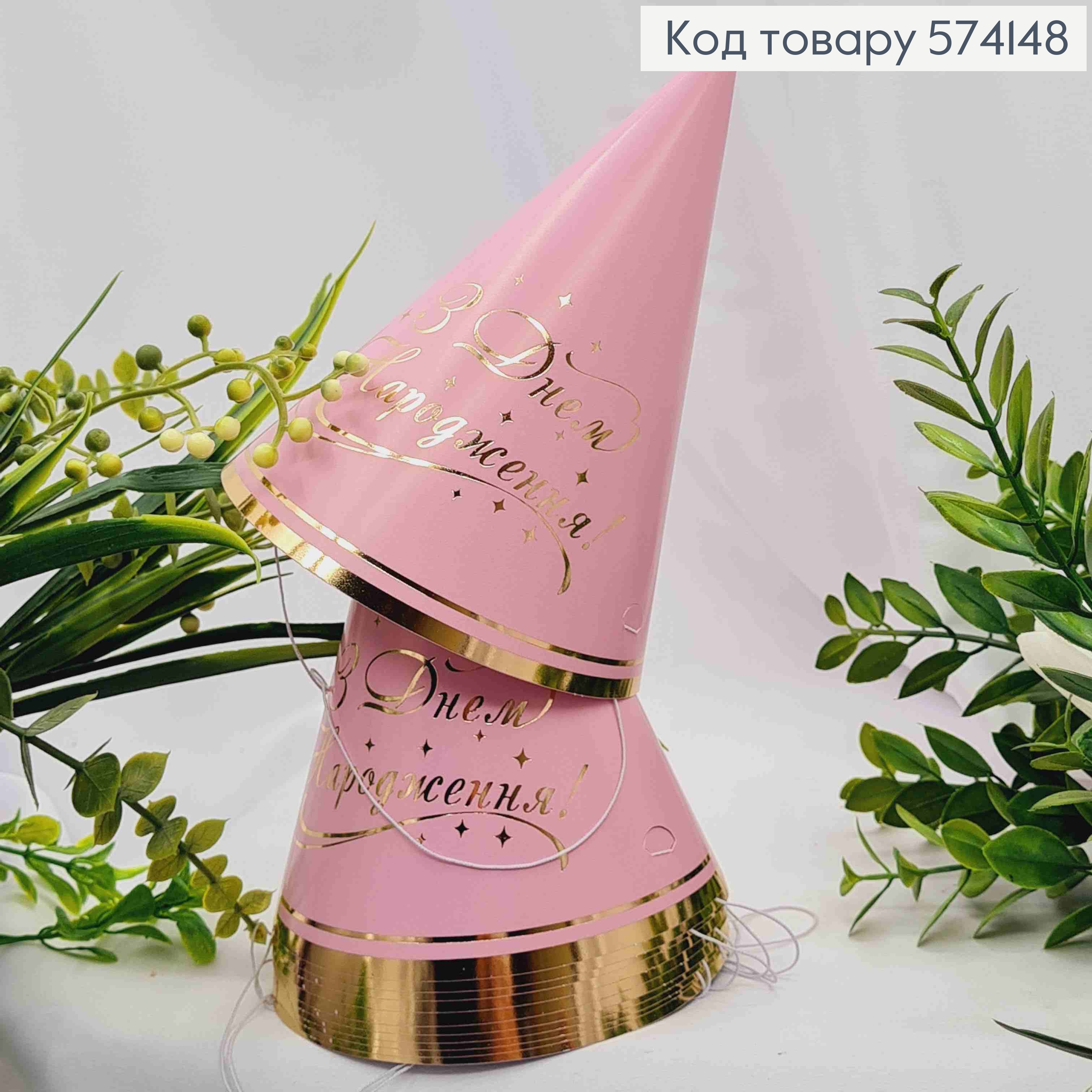 Набор праздничных колпачков, "С Днем Рождения", Розового цвета с золотой надписью, 10шт/уп.