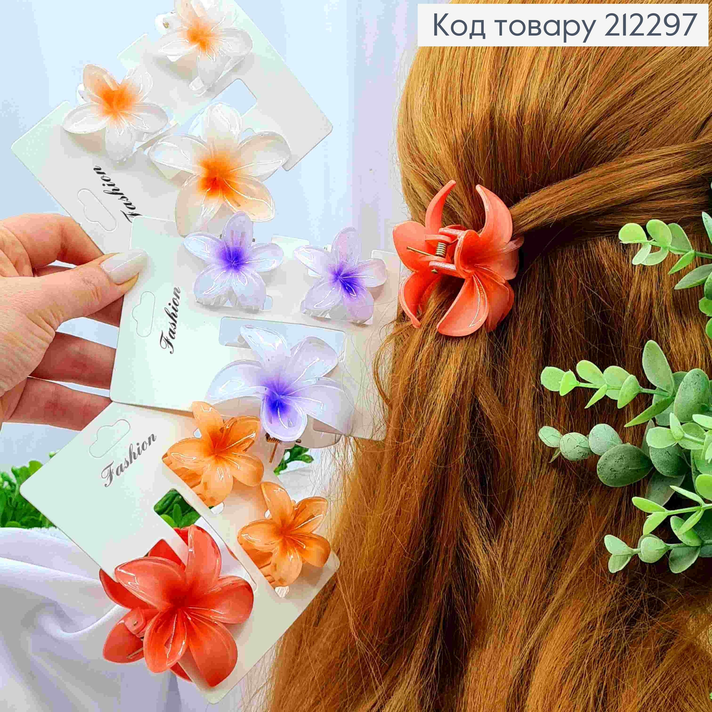 Краб пластик ГАВАЙСКИЙ цветок  ЯРКИЕ цвета, размер 5,5см, цвета в ассортименте 213351 фото