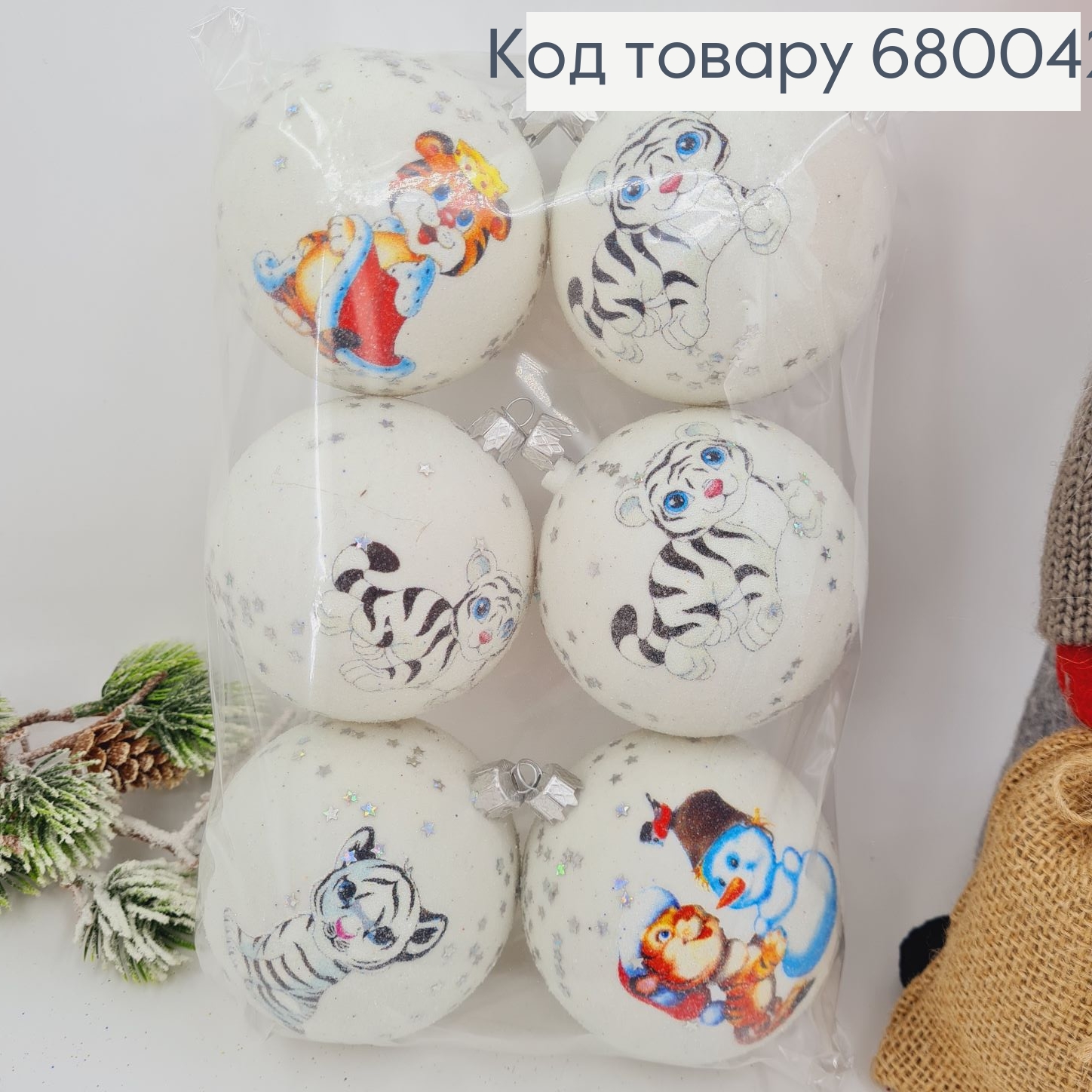 Набор шаров 80 мм иней символ Тигр белая в ас.6 шт/уп
