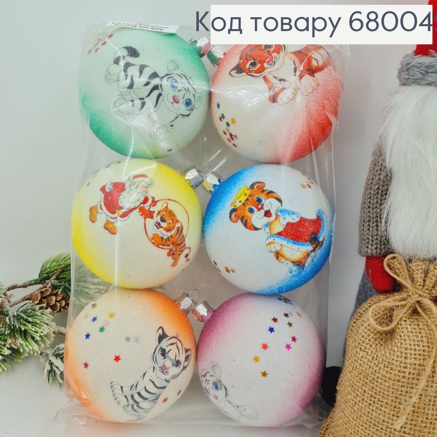Набор шаров 80 мм иней символ Тигр в ас.6 шт/уп