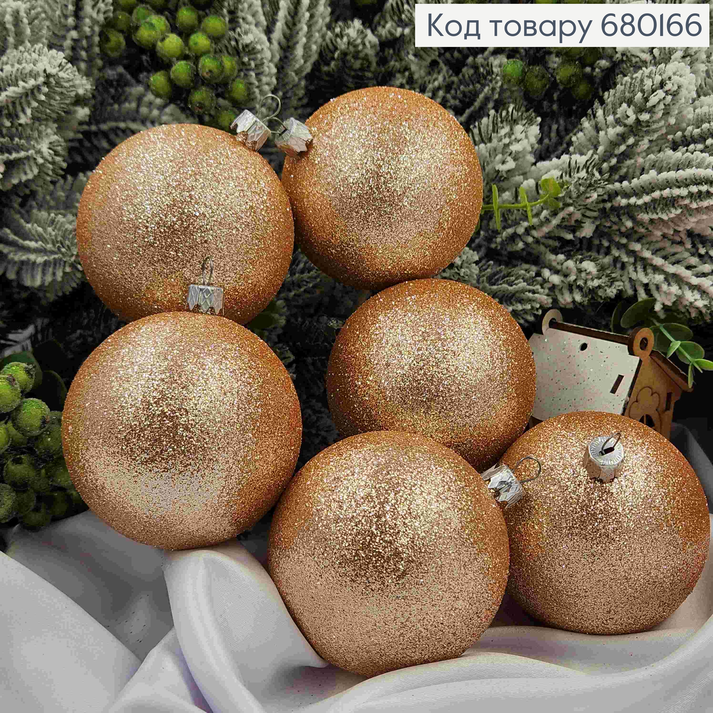 Набор игрушек 80мм (6шт) "ПАСТЕЛЬ+рис", ПЕРСИКОВЫЙ цвет, новогодние украшения, пластик, Украина 680274 фото