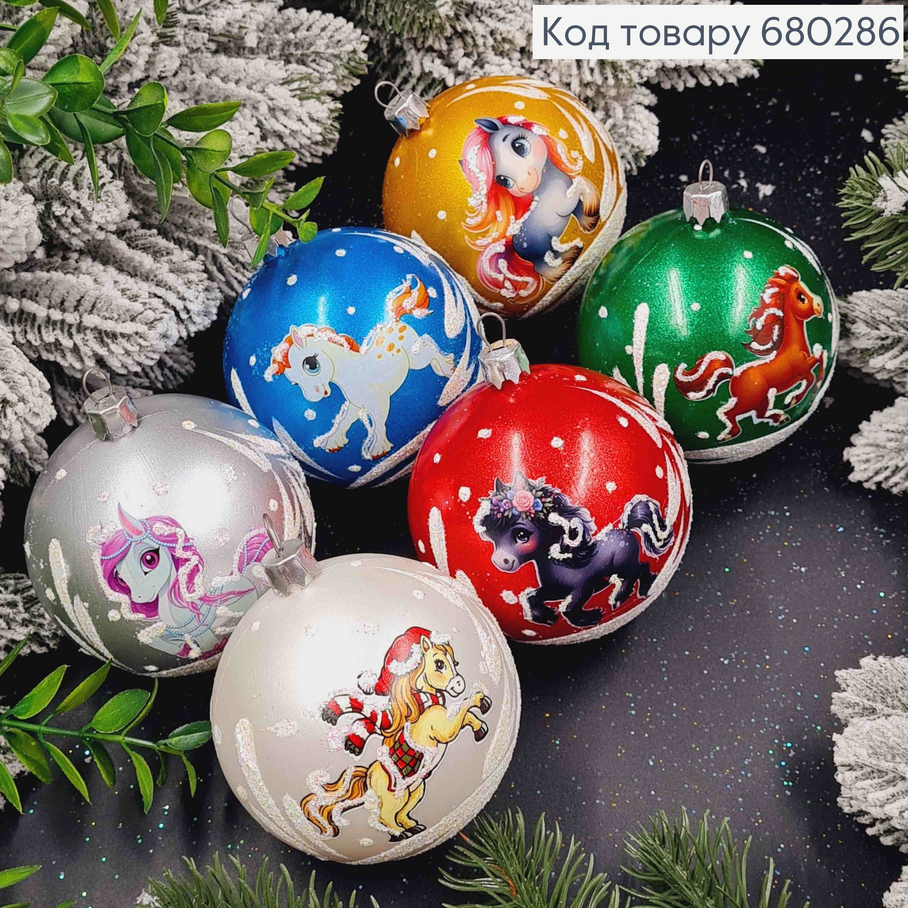 Набор шаров 80мм "КРАСКА", с символом года - "Конь", 6 шт/уп, новогодние украшения, Украина.