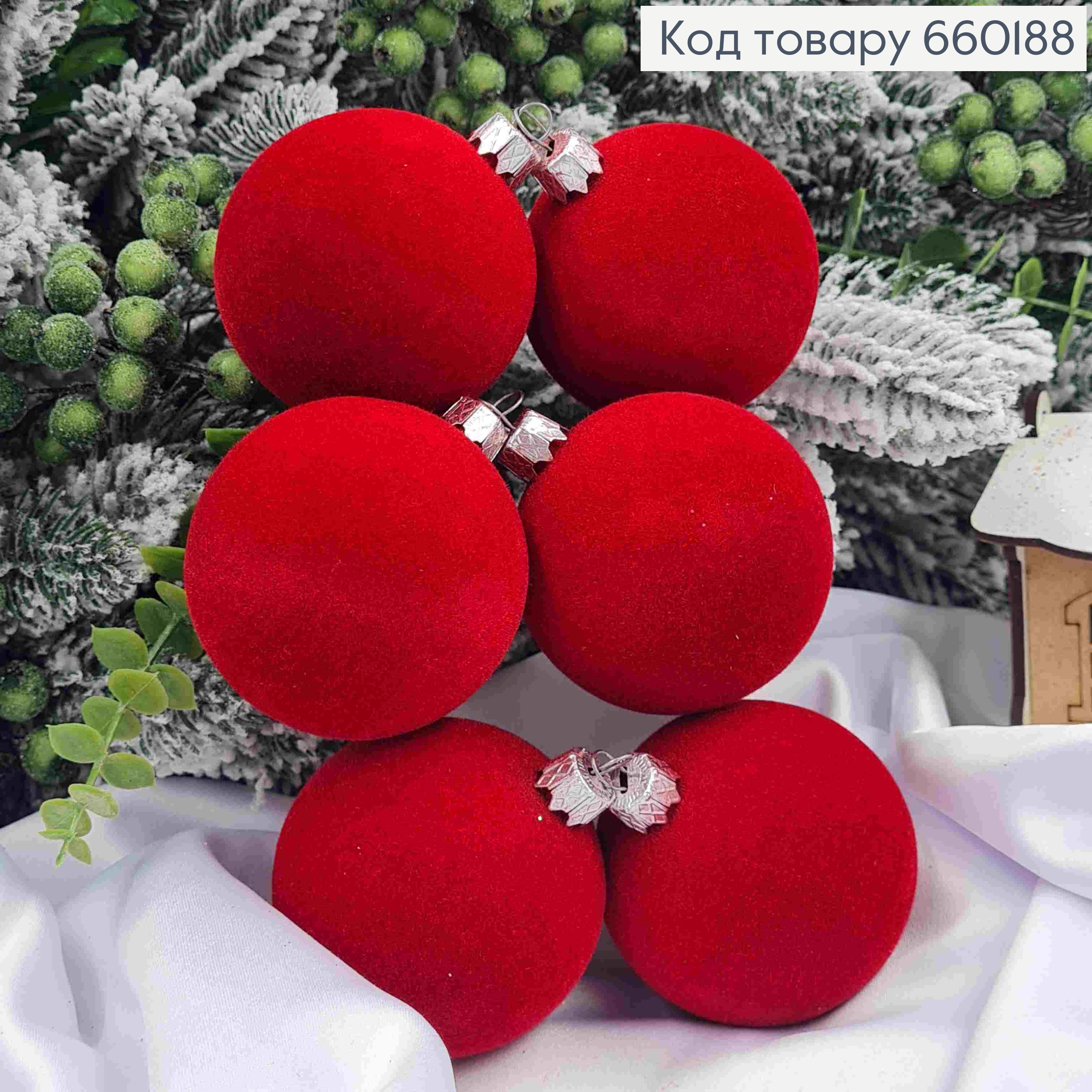 Набор шаров(6шт), 60 мм "БАРХАТ", КРАСНЫЙ цвет,новогодние украшения, пластик, Украина