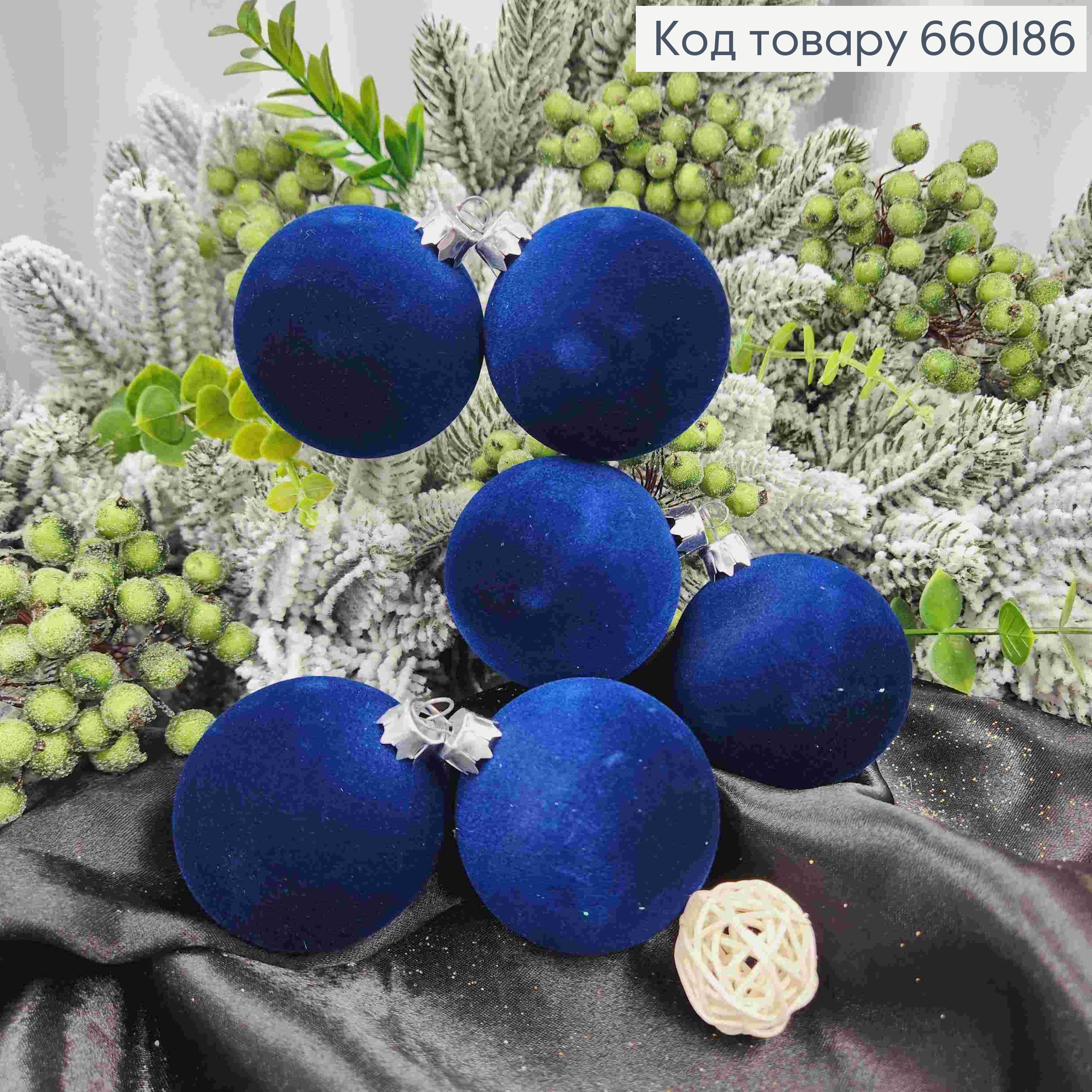 Набор шаров(6шт), 60 мм "БАРХАТ", ТЕМННЫЙ СИНИЙ цвет,новогодние украшения, пластик, Украина