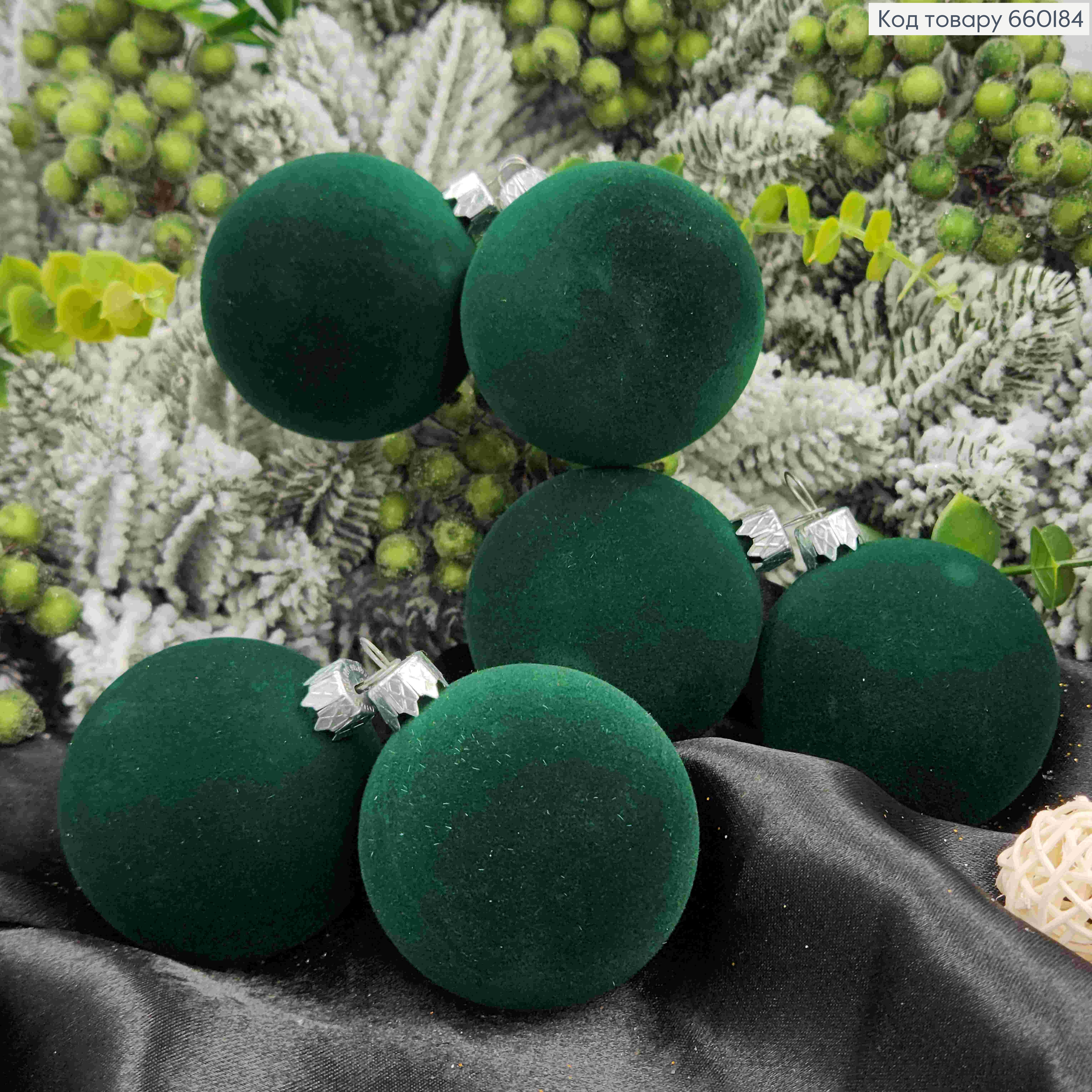 Шар (1шт), 60 мм "БАРХАТ", ЗЕЛЕНЫЙ цвет,новогодние украшения, пластик, Украина 660184(1шт) фото