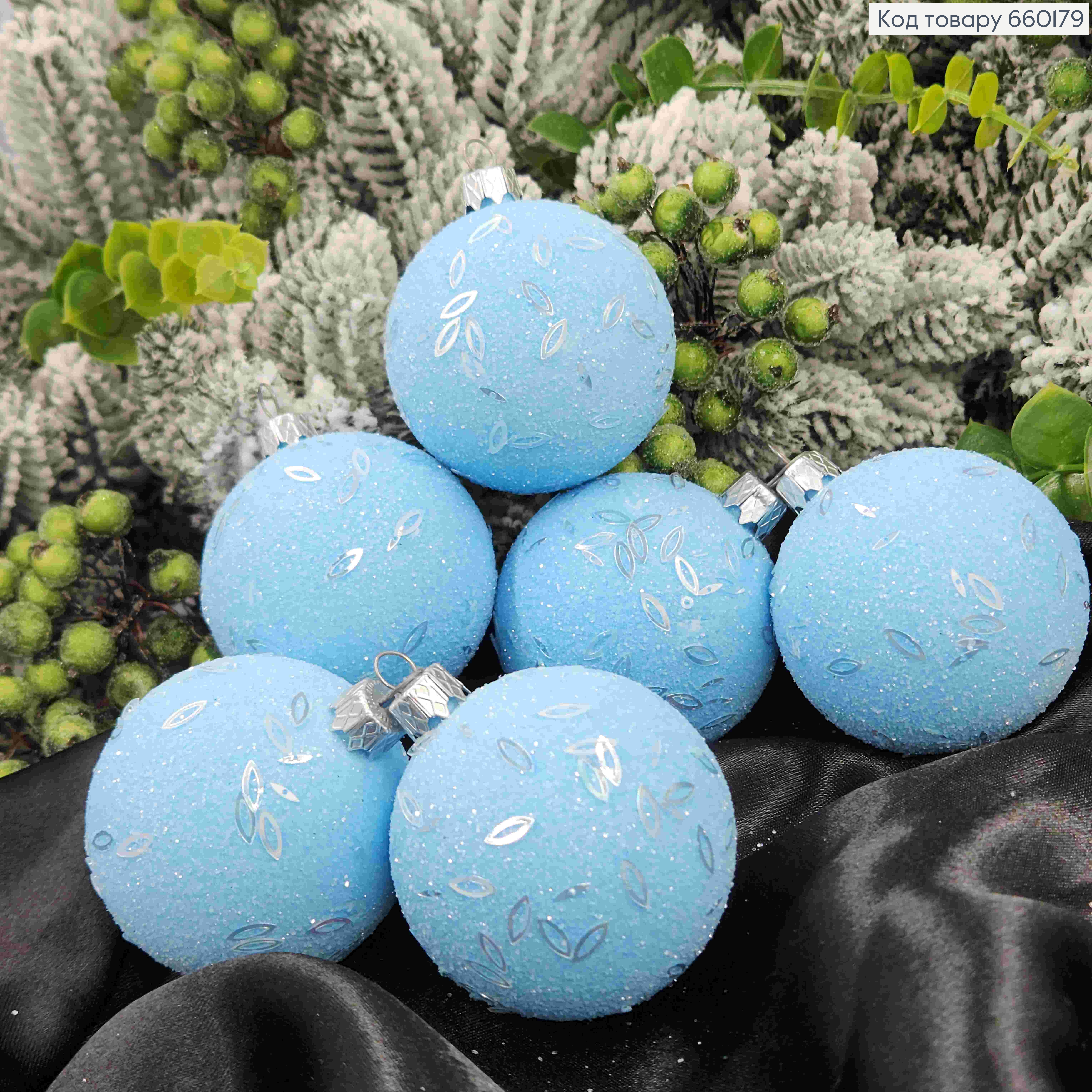 Набор шаров(6шт), 60 мм "ПАСТЕЛЬ+рис", ГОЛУБЫЙ цвет,новогодние украшения, пластик, Украина