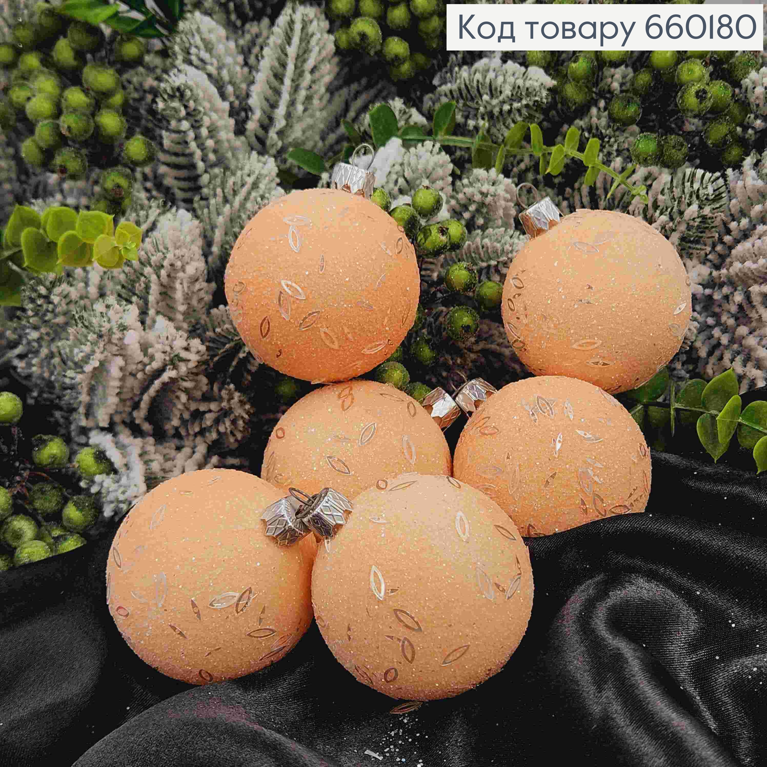 Набор шаров(6шт), 60 мм "ПАСТЕЛЬ+рис", ПЕРСИКОВЫЙ цвет,новогодние украшения, пластик, Украина