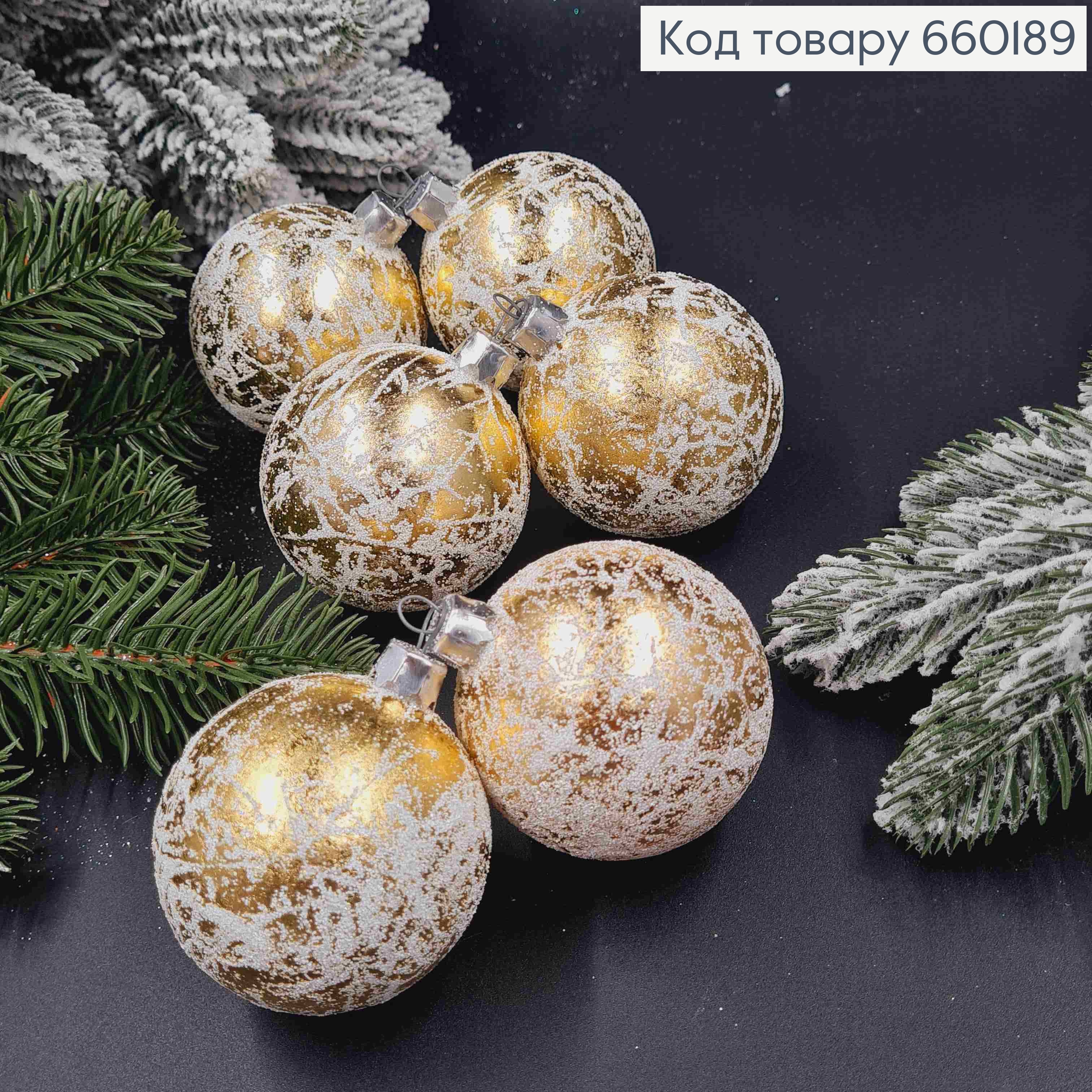 Набор шаров(6шт), 60 мм "РЕТРО СНЕГ", ЗОЛОТЫЙ цвет,новогодние украшения, пластик, Украина