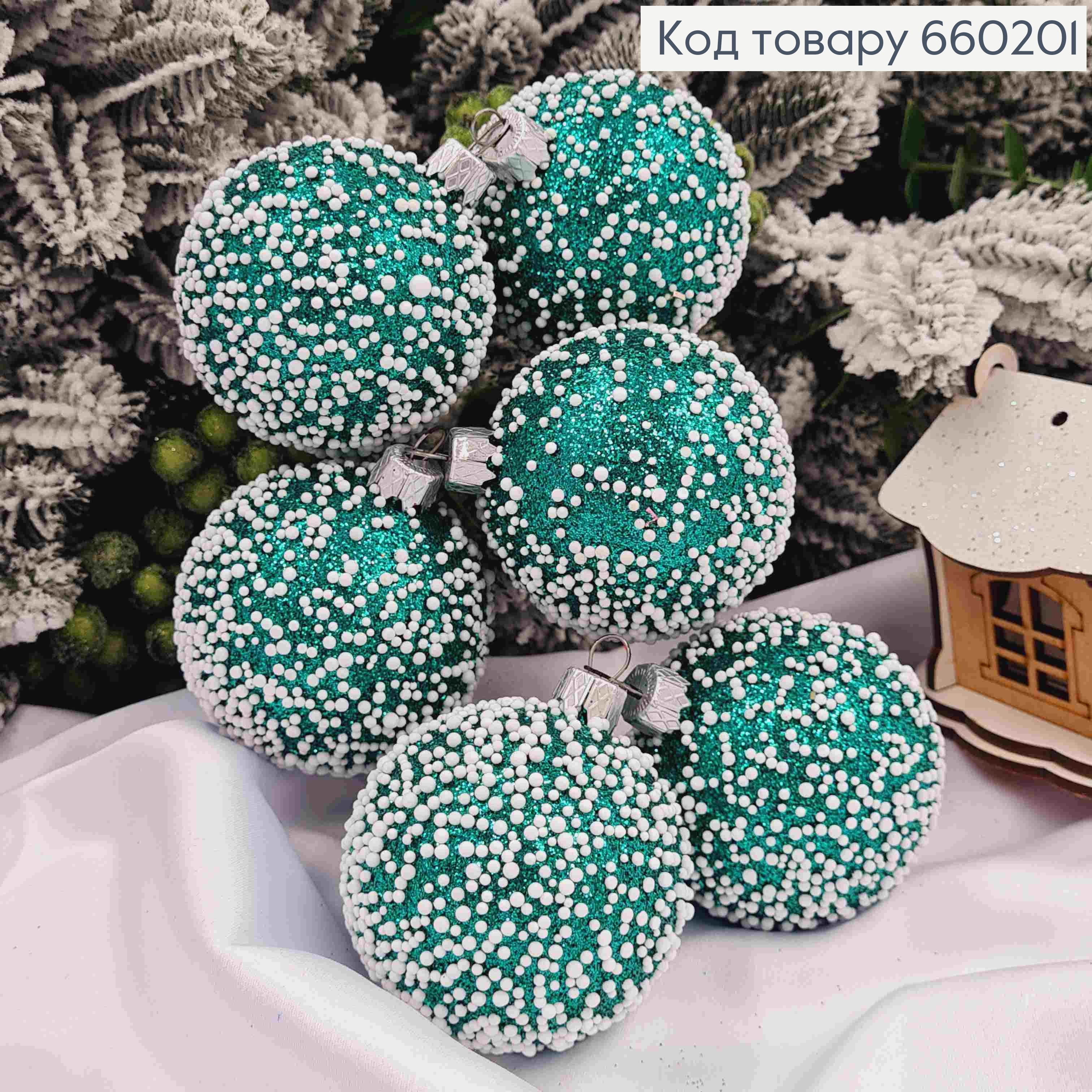 Набор шаров(6шт), 60 мм "СНЕГОПАД", ИЗУМРУДНЫЙ цвет,новогодние украшения, пластик, Украина