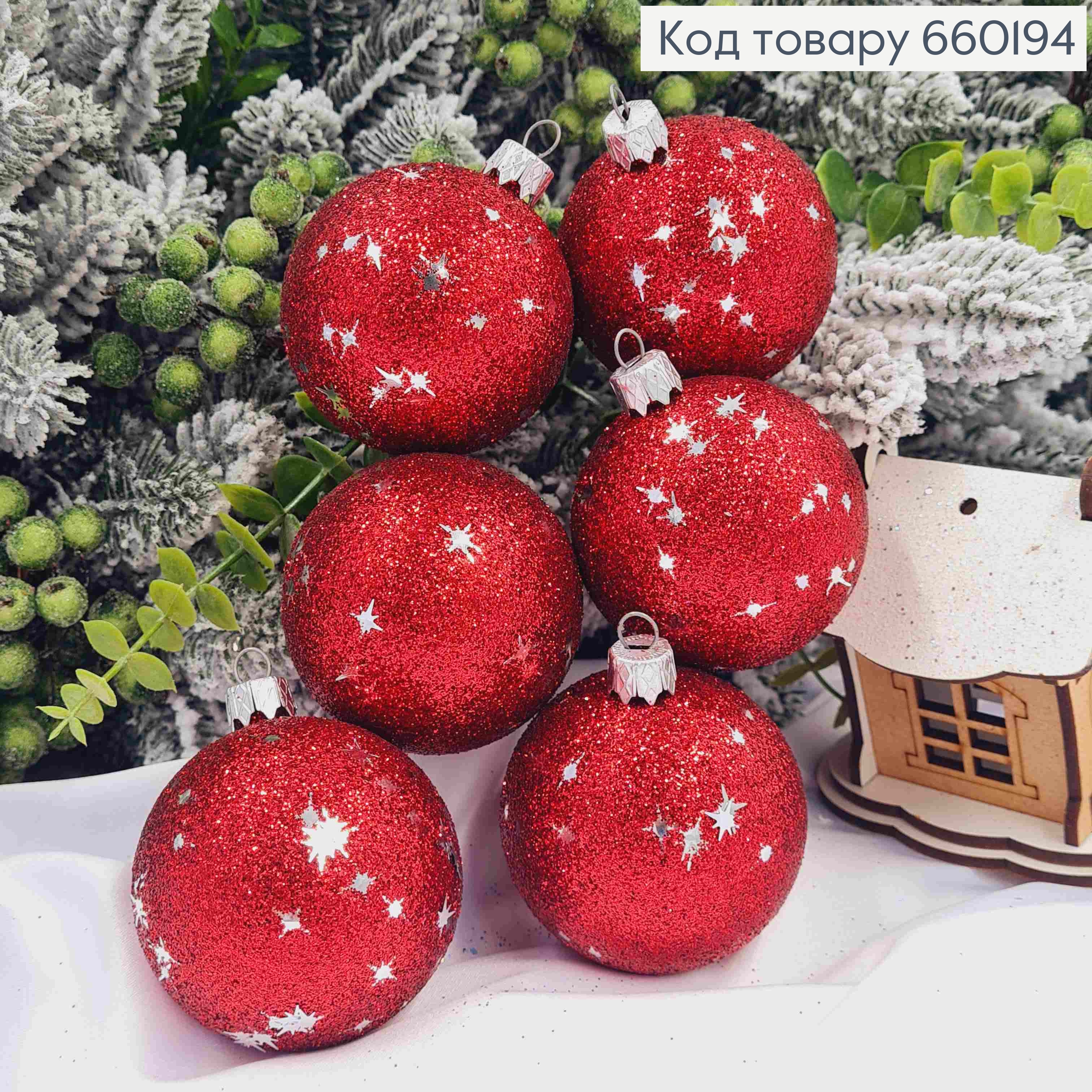 Набор шаров(6шт), 60 мм "ЗОРЕПАД", КРАСНЫЙ цвет,новогодние украшения, пластик, Украина