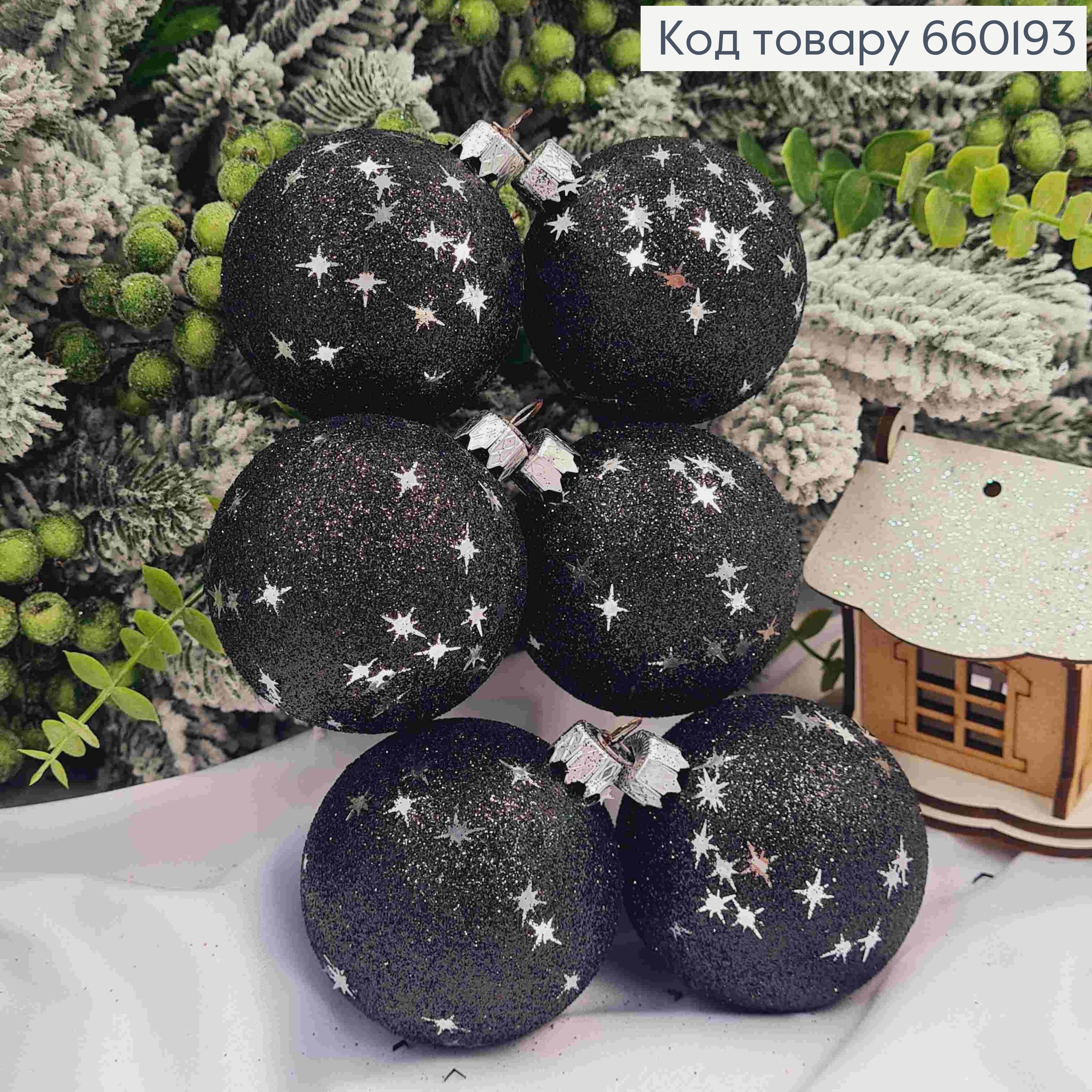 Набор шаров(6шт), 60 мм "ЗОРЕПАД", ЧЕРНЫЙ цвет,новогодние украшения, пластик, Украина