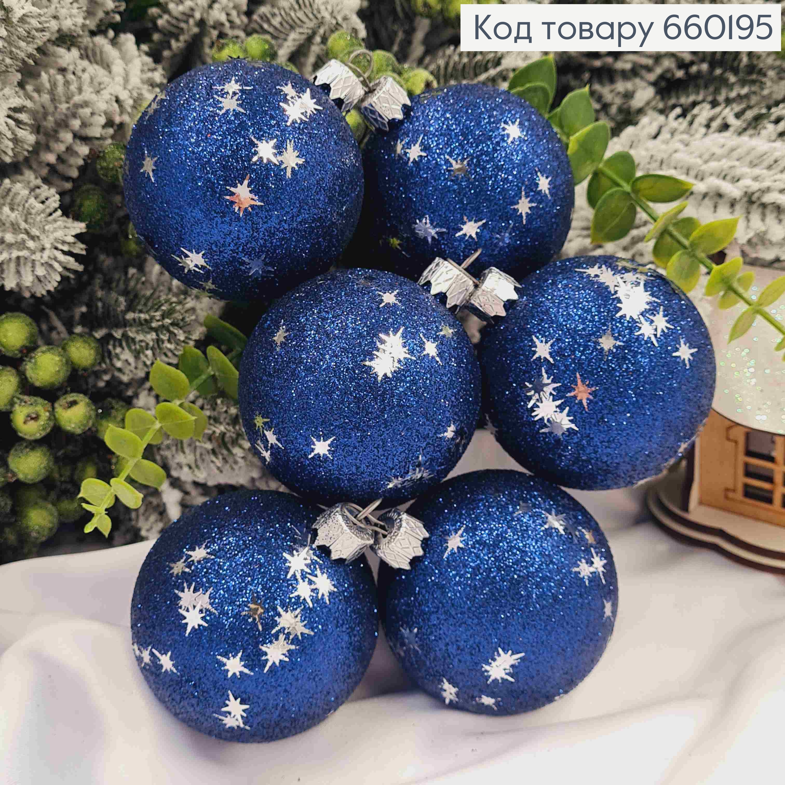 Набор шаров(6шт), 60 мм "ЗВЕЗОПАД", темно СИНИЙ цвет,новогодние украшения, пластик, Украина