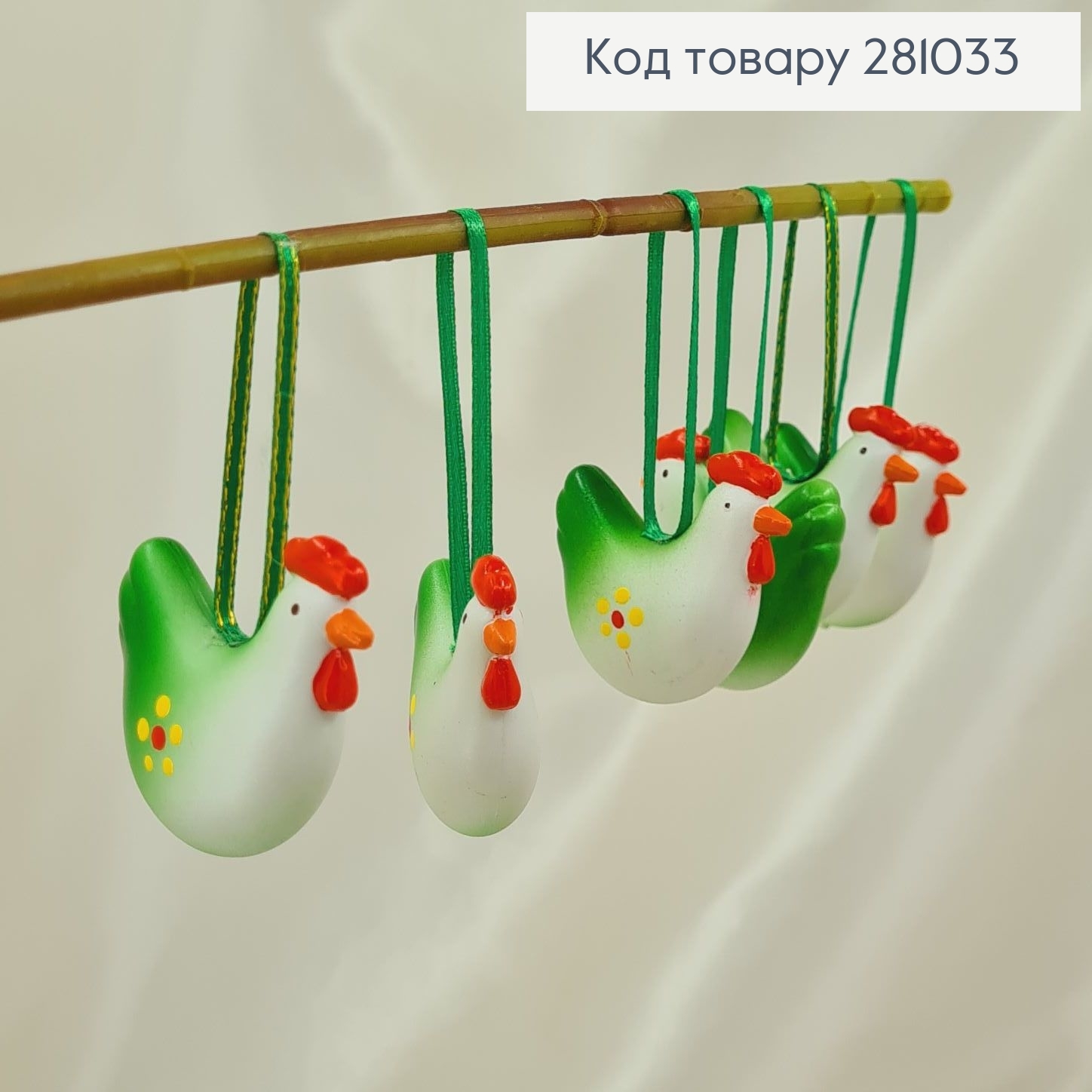 Набор курочек зелено-белых на подвеске пластиковых 6 шт 4,5х4,5 см