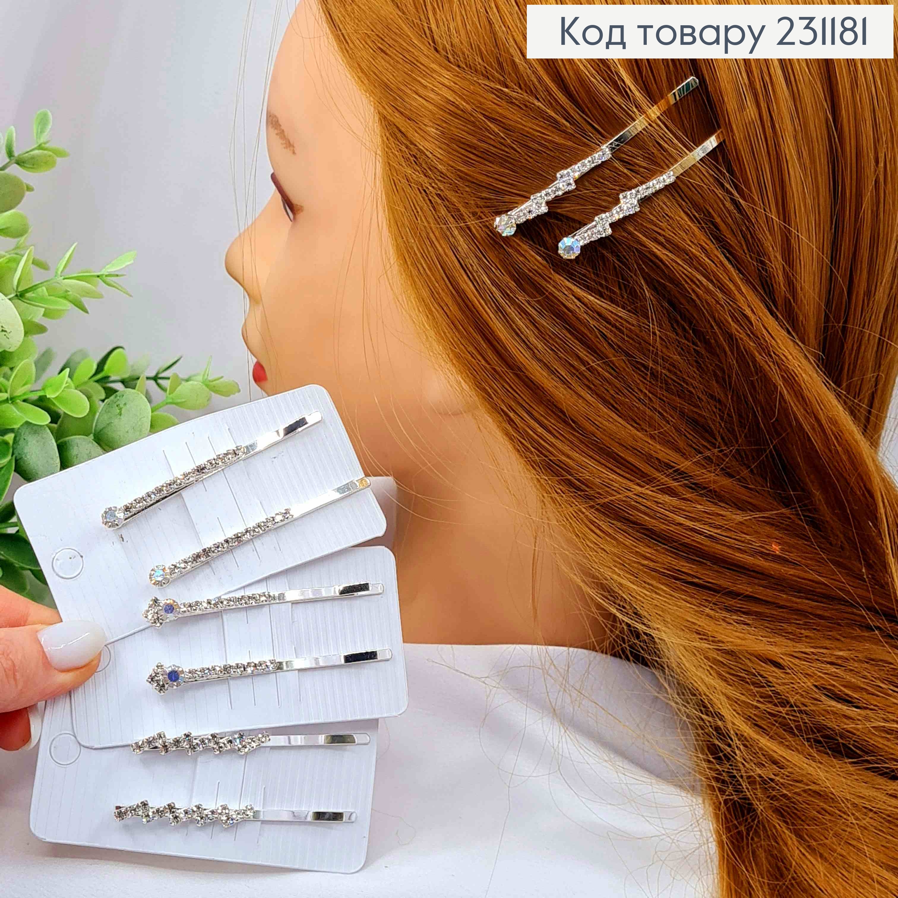 Набор невидимок (2шт), с блестящими камешками, в ассортименте, 6,5см, серебряного цвета, цена за 2шт