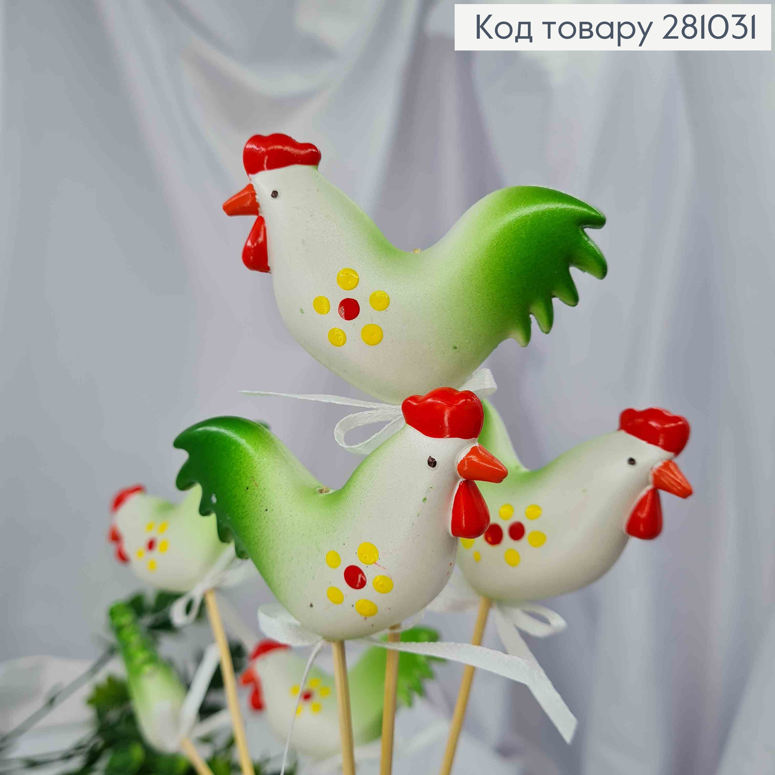 Набор петушков зелено-белых пластиковых на деревянной палочке 6 шт 20 см