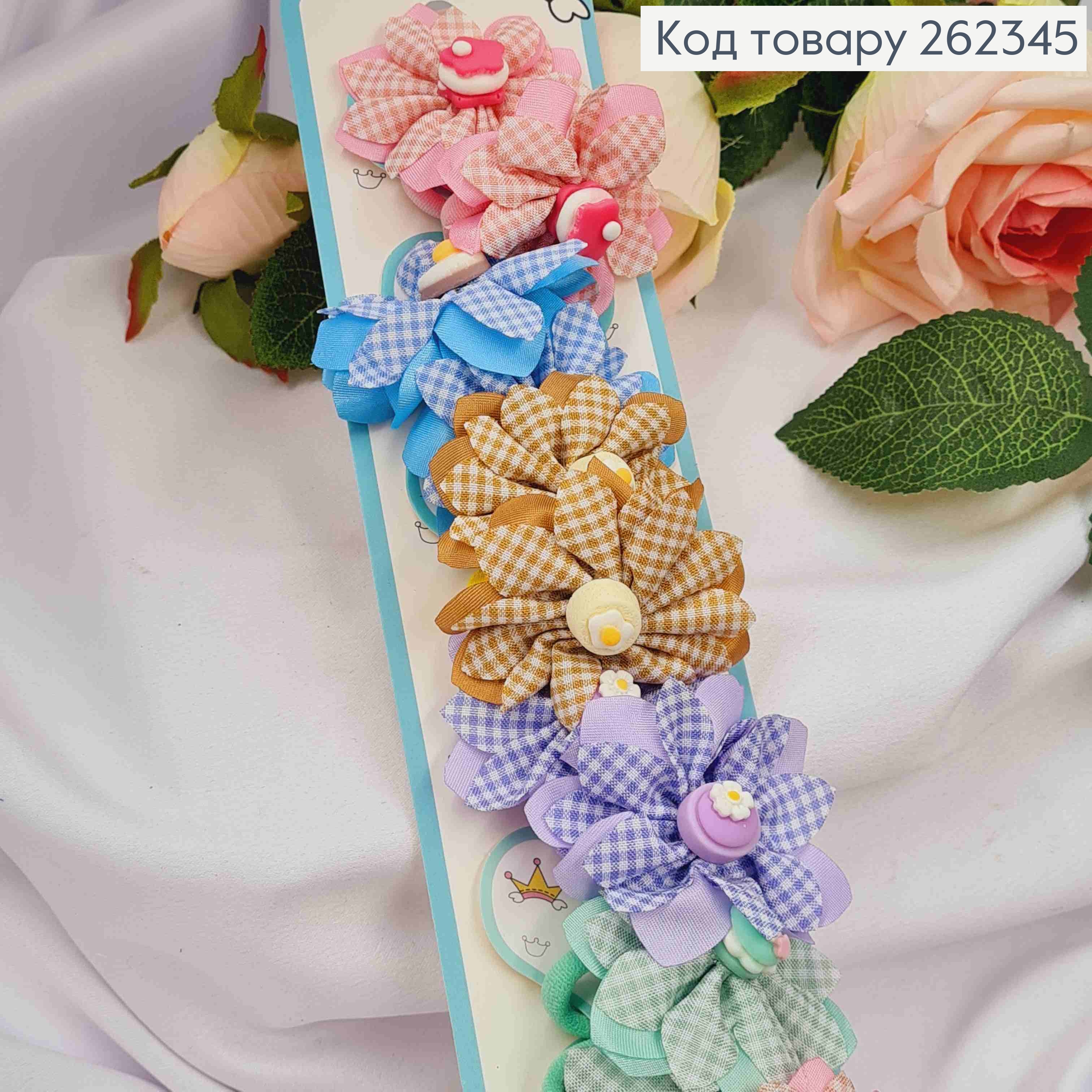 Набор резинок (20шт) БАНТИК-ЦВЕТОК с пирожными (5,5см), резинка 2,5см, цвета в ассортименте