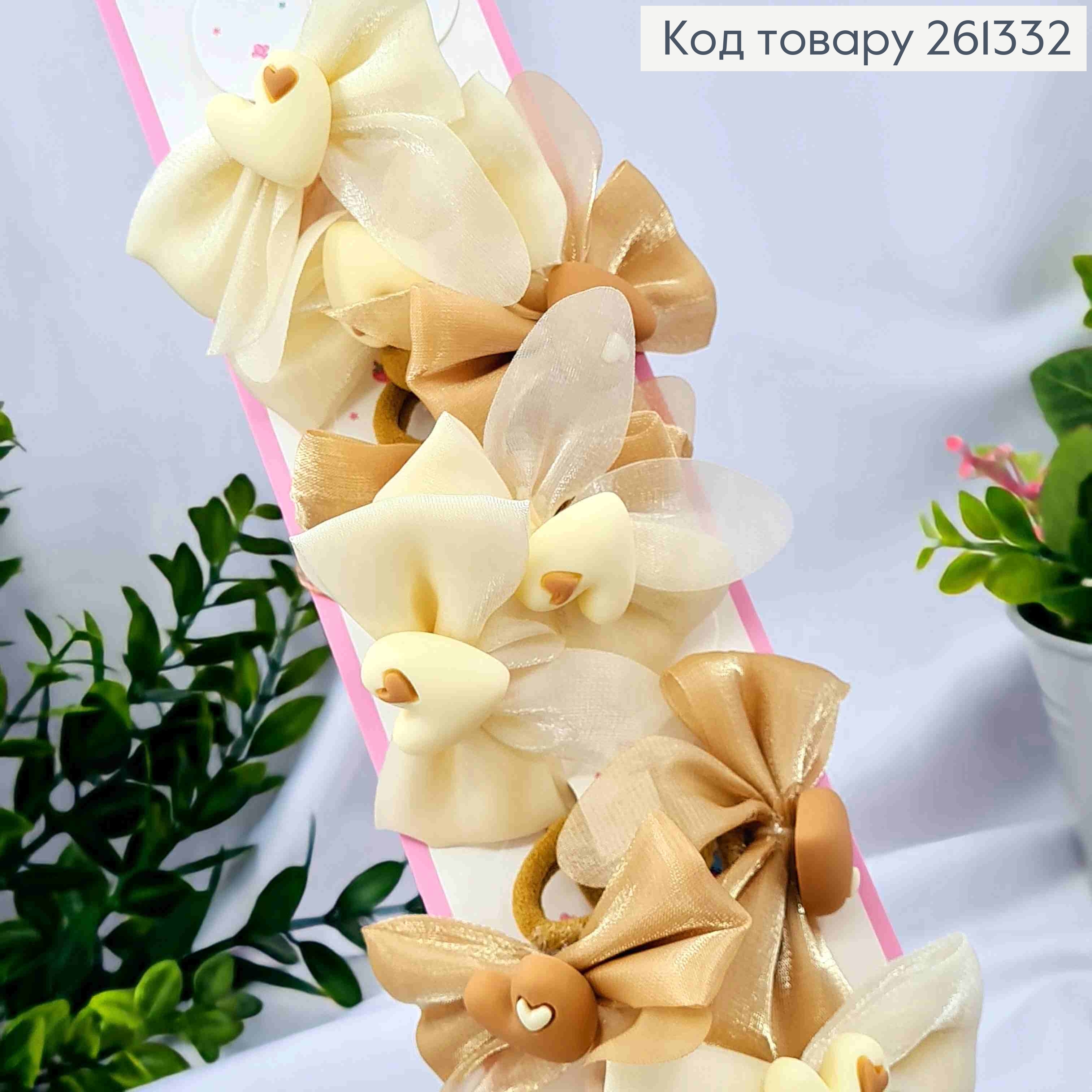 Набор резинок (20шт), БАНТИК +СЕРДЕЧКО, Пастельные Бежевый цвет, резинка 3см, бантик 6*4,5см