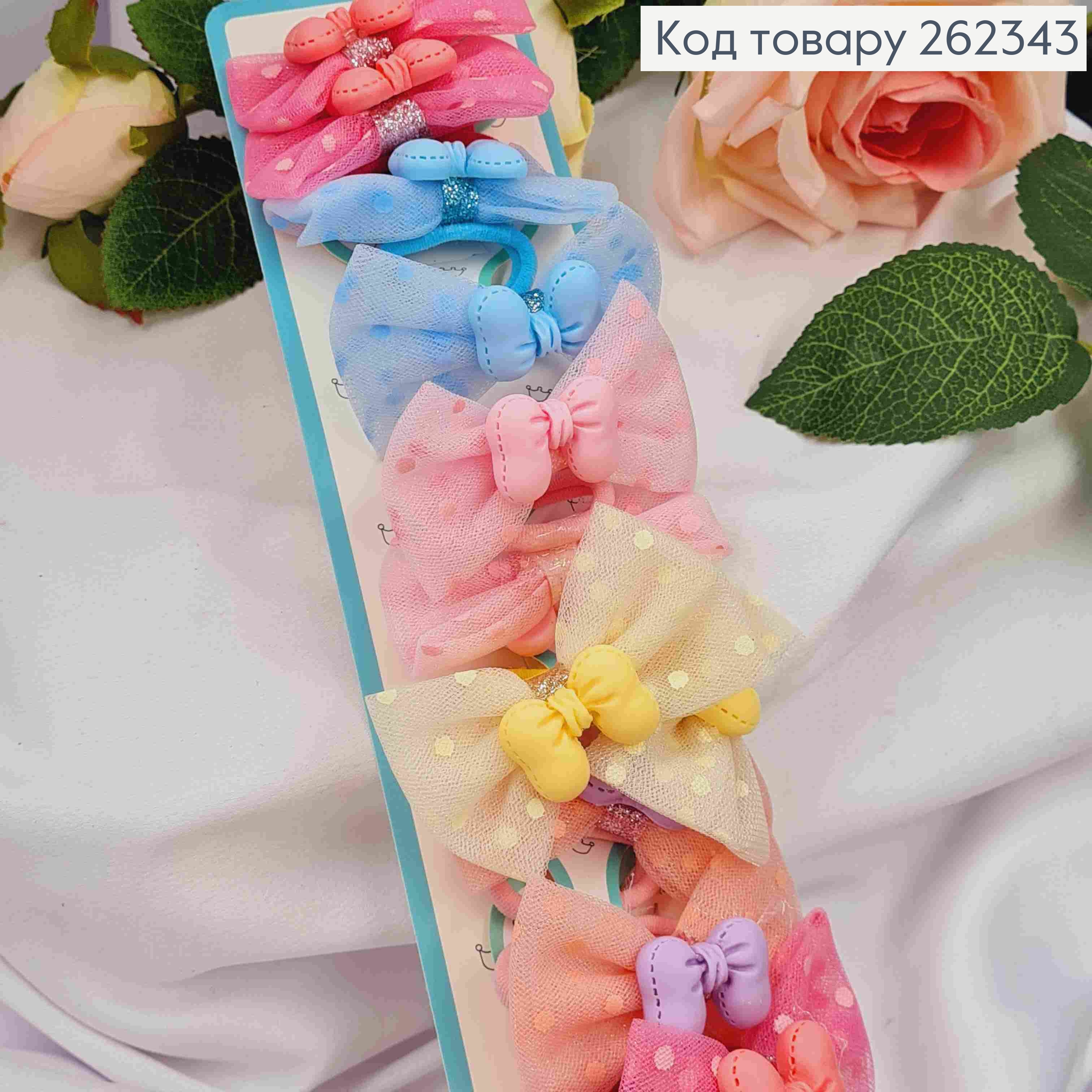 Набор резинок (20шт) "Медвежата" с Бусинами и Бантиком, Пастельные цвета, резинка 2,5см, бант 5см 261389 фото