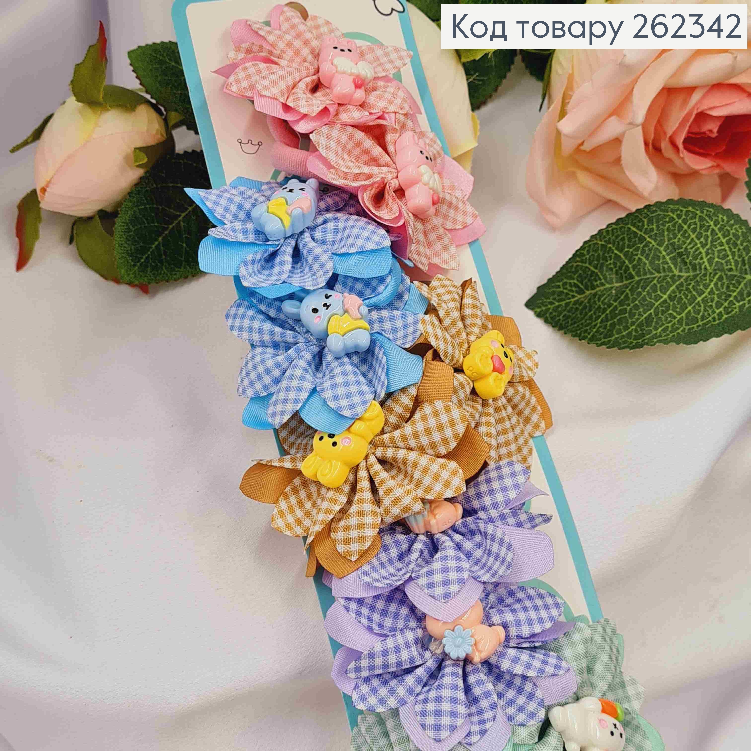 Набор резинок (20шт) "Животные" с бантиком, Пастельные цвета, резинка 3см, животные 2,5см 261387 фото