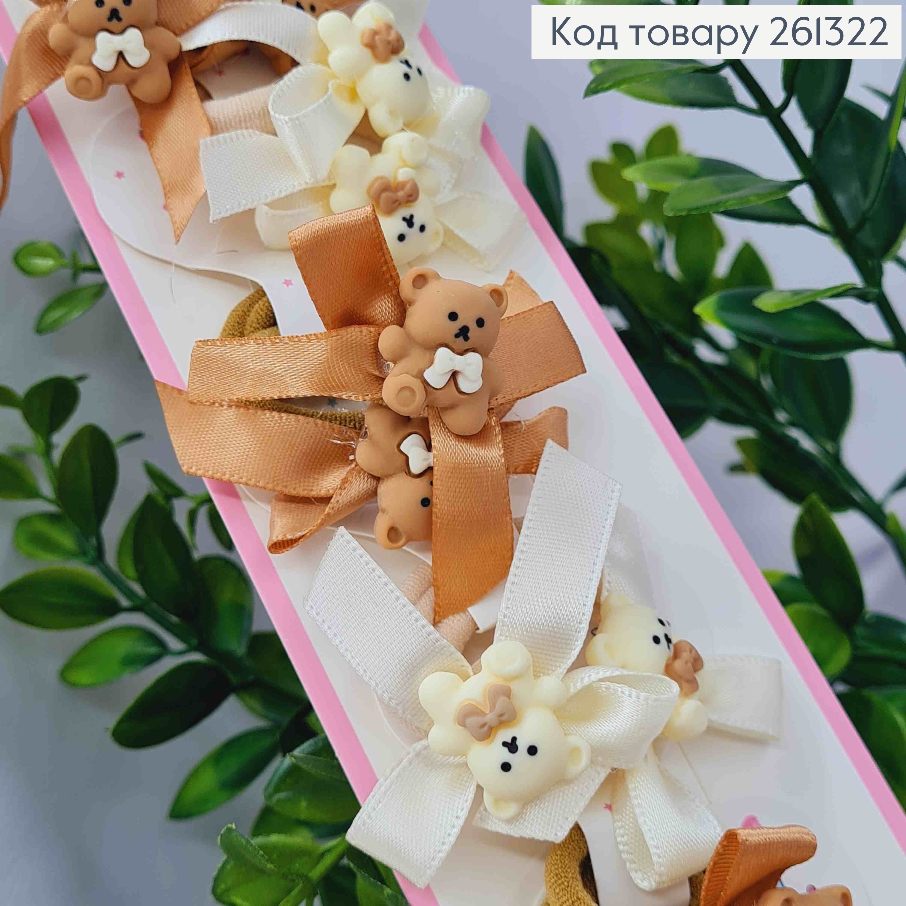 Набор резинок (20шт), БАНТИК с МИШКОМ, Бежевые цвета, резинка 3см, бантик 4,5*4,5см