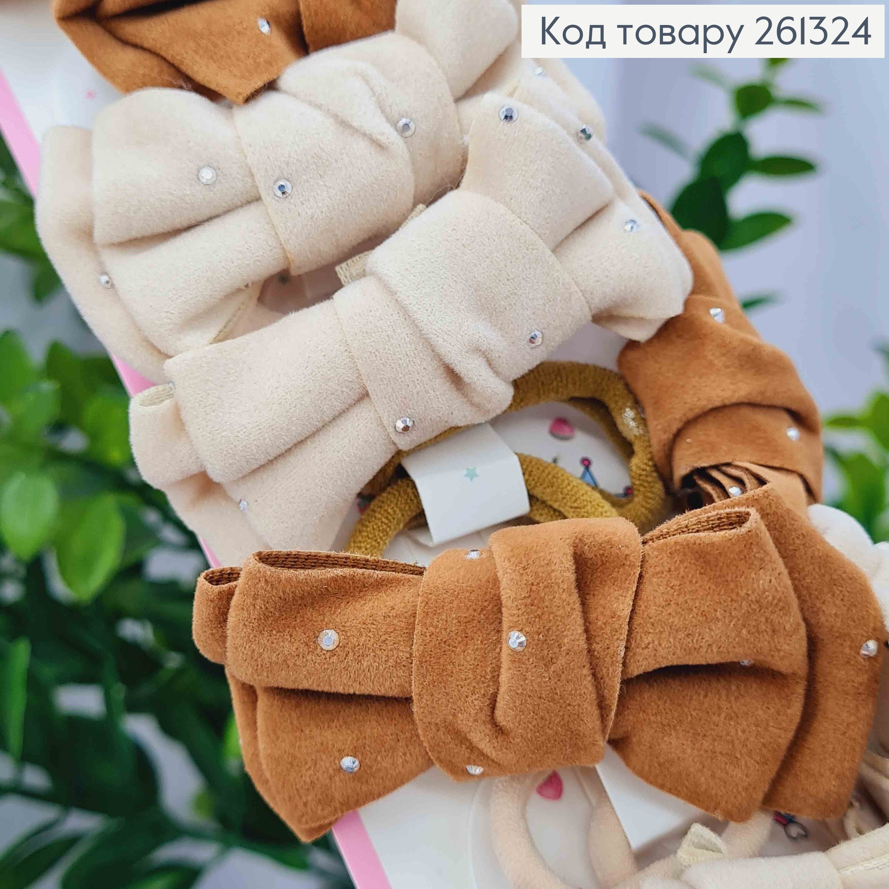 Набор резинок (20шт), БАНТИК со Стразами, Бежевый цвет, резинка 3см, бантик 6*3,5см