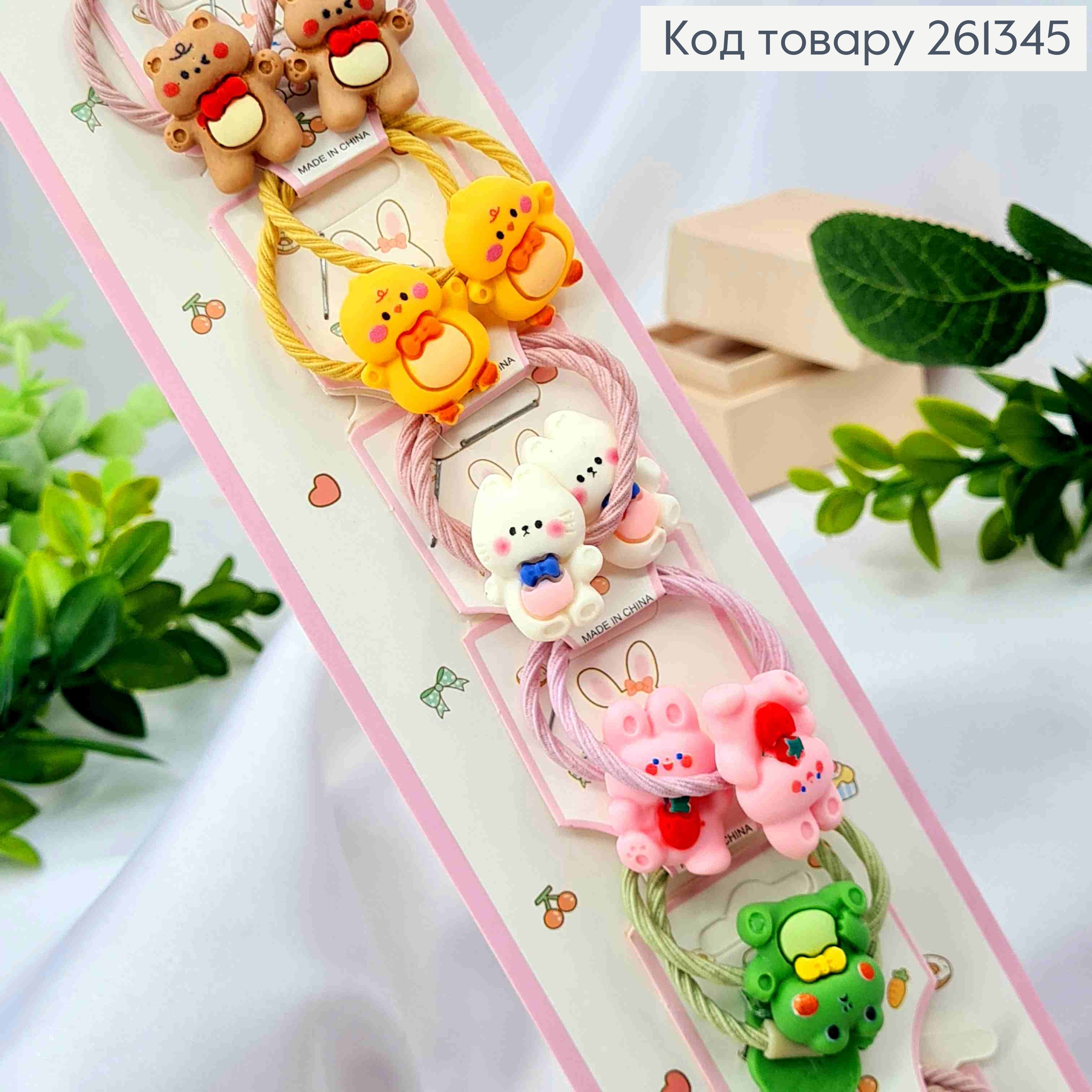 Набор резинок (20шт) "Животные" с бантиком, Пастельные цвета, резинка 3см, животные 2,5см 261387 фото