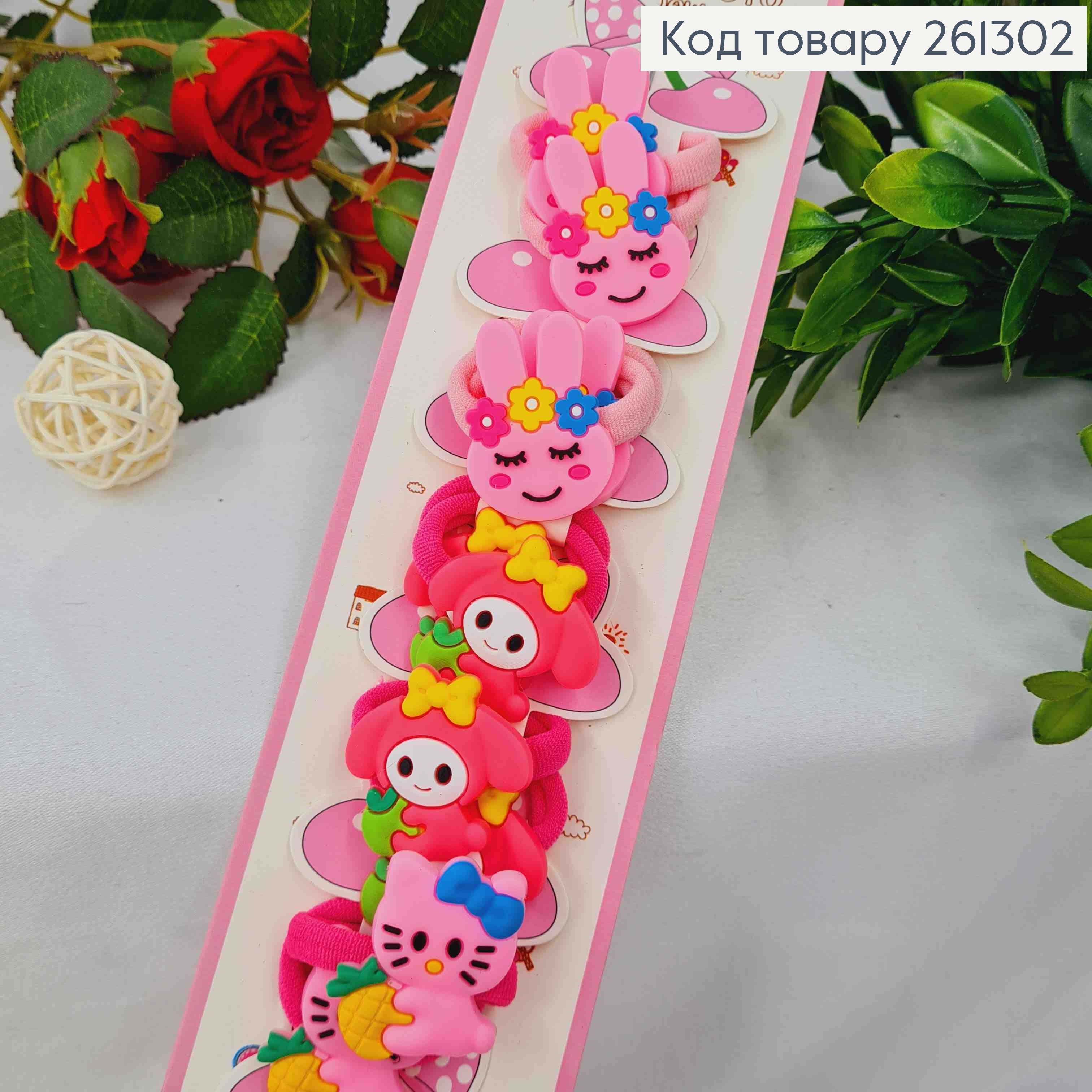 Набор резинок (20шт), "Sakura Sanrio" с Пушистиком, Пастельные цвета, резинка 3,5см, sakura 2,8см 261381 фото