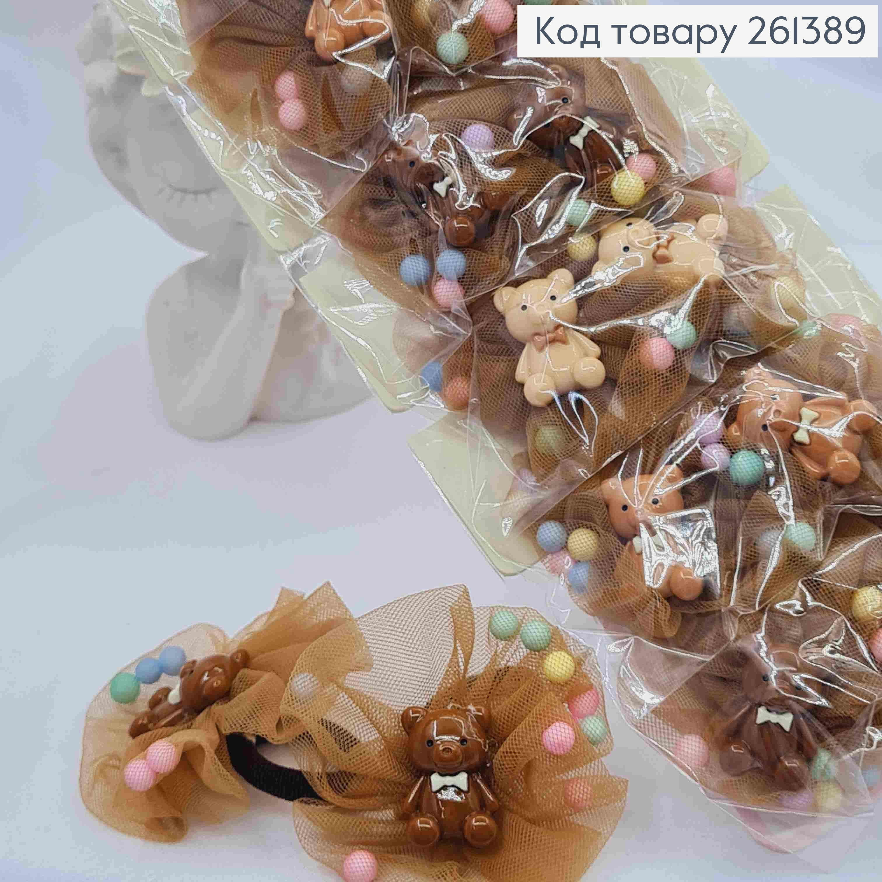 Набор резинок (20шт) "Медвежата" с Бусинами и Бантиком, Пастельные цвета, резинка 2,5см, бант 5см