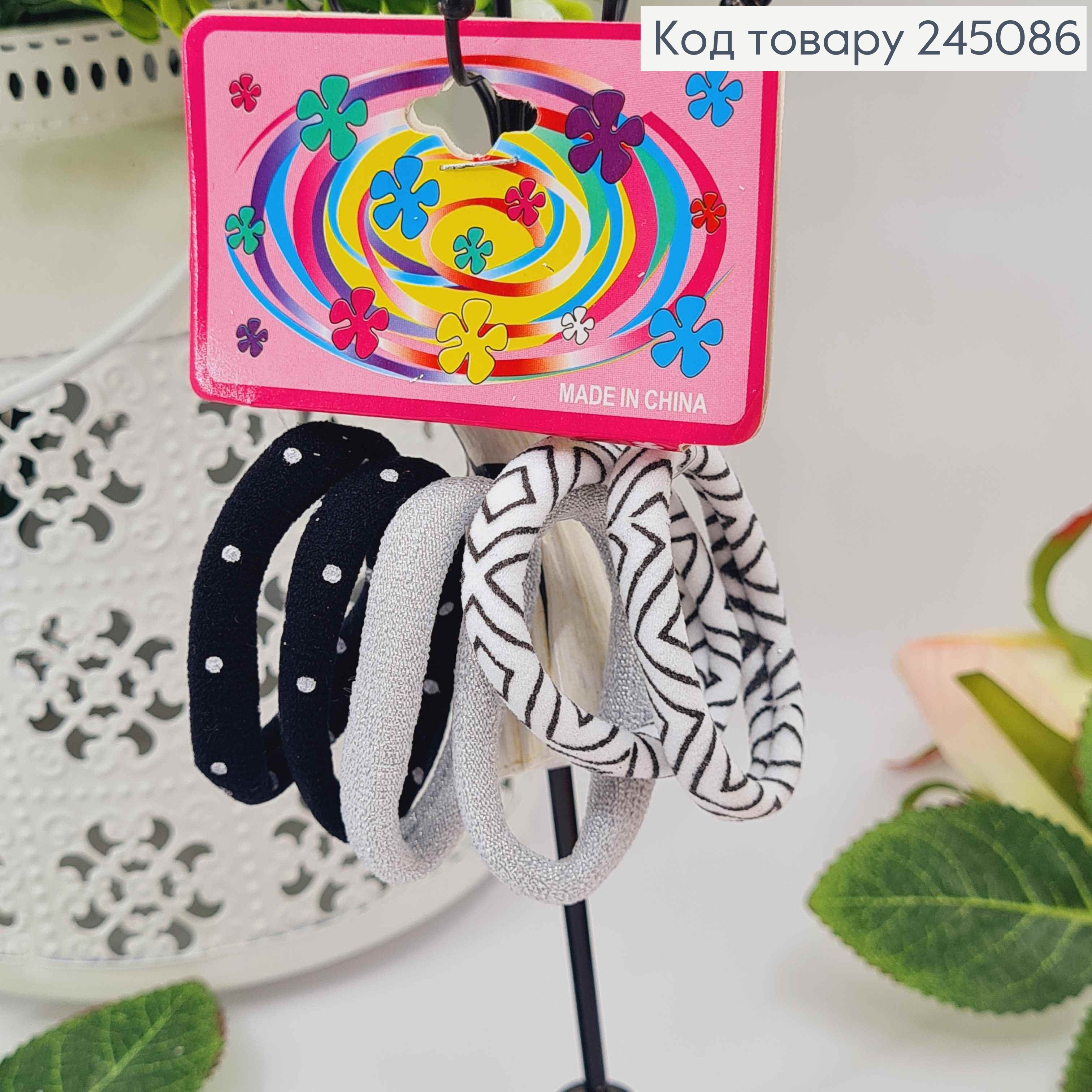 Набор резинок 4,5см, микрофибра В черно-белых тонах, 6шт/уп