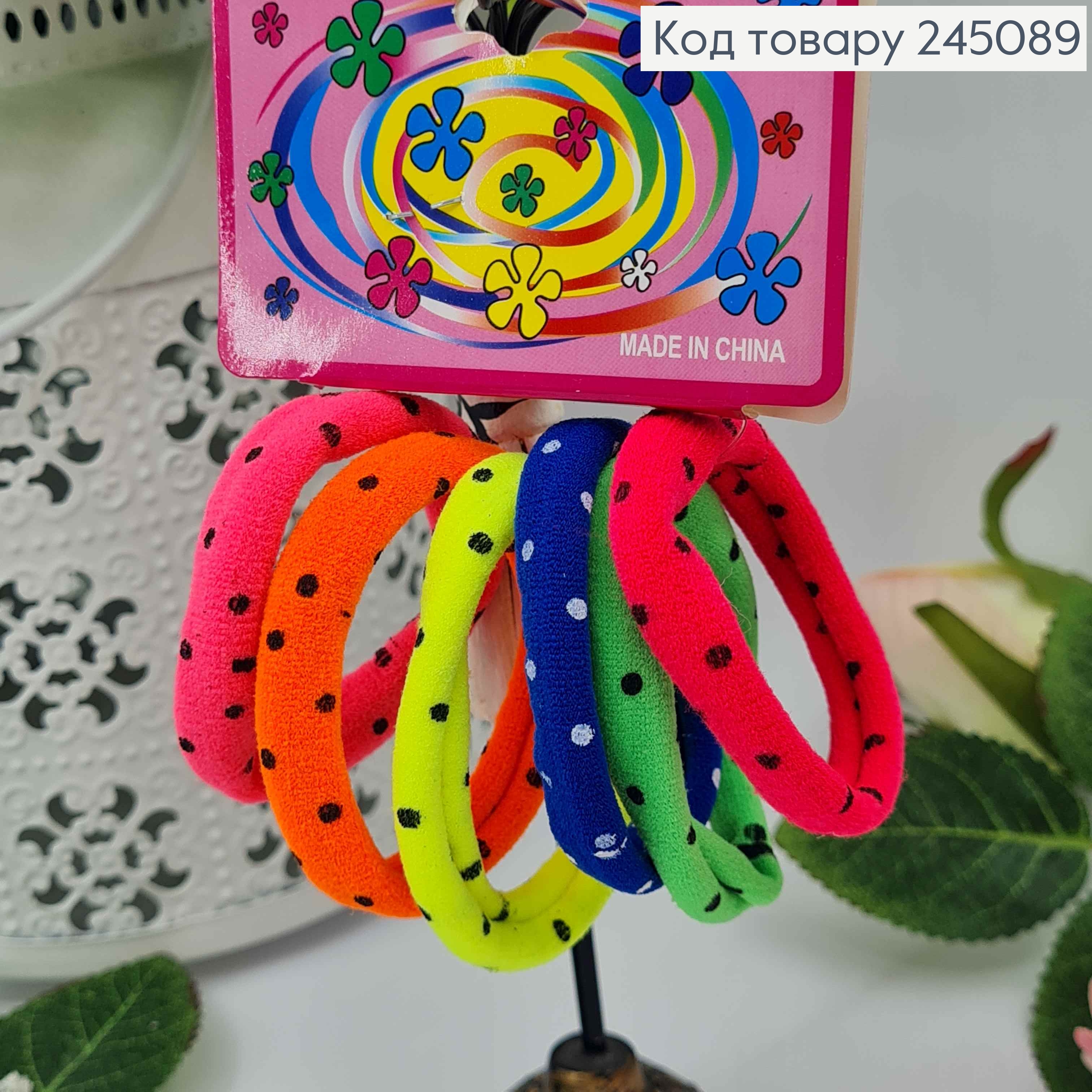 Набор резинок 5см, Микрофибра яркая в горошек, 6шт/уп