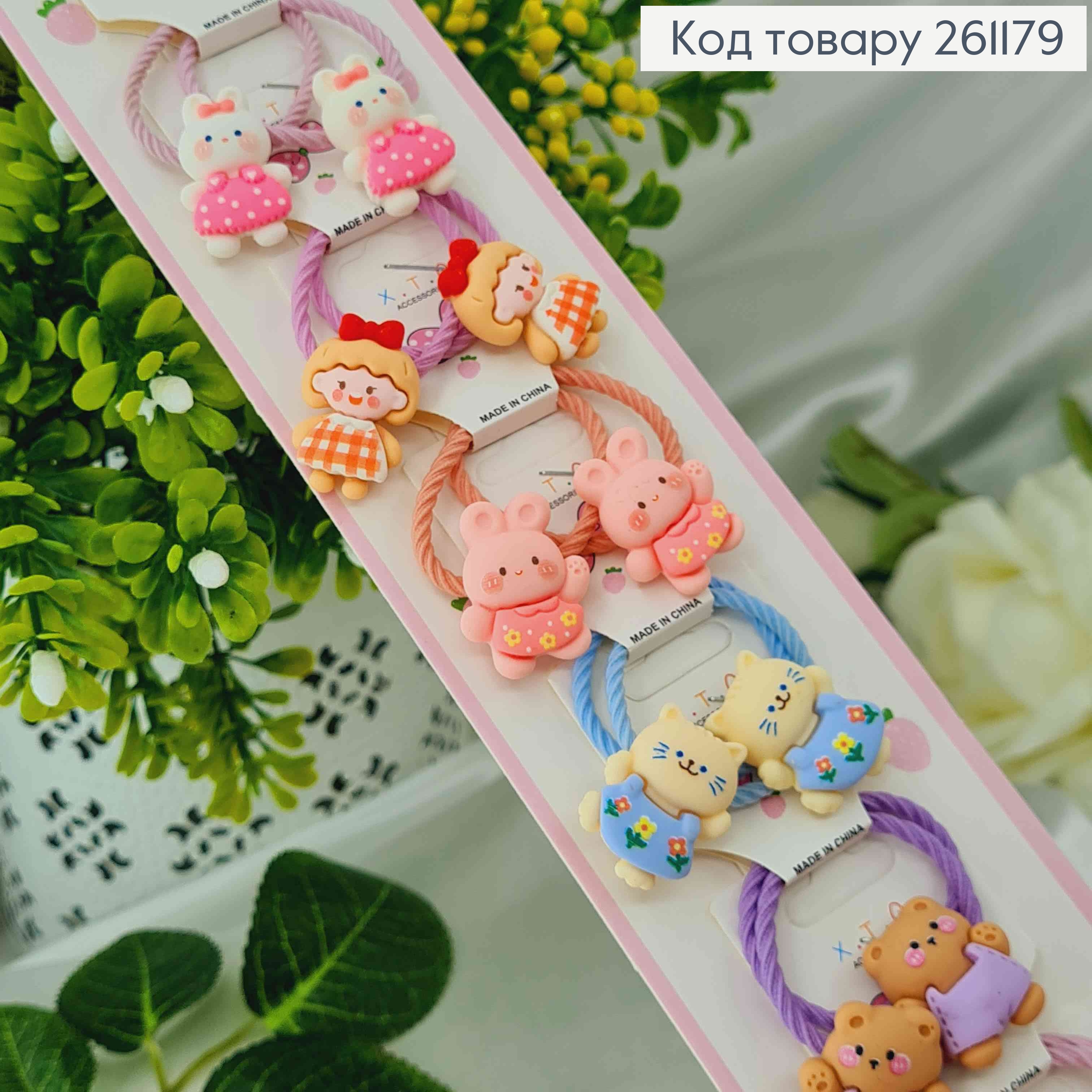 Набор резинок (20шт) "Животные" с бантиком, Пастельные цвета, резинка 3см, животные 2,5см 261387 фото