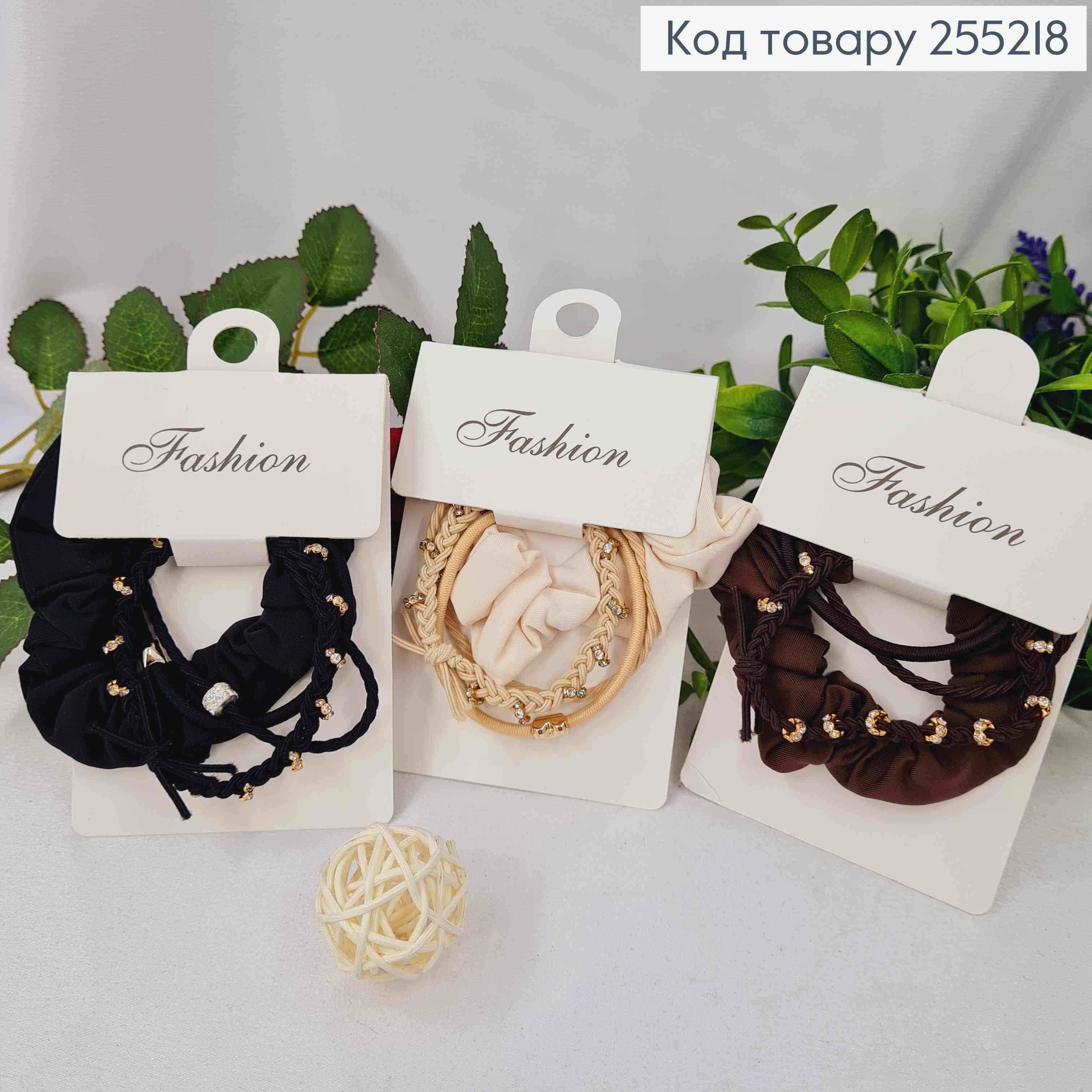 Набор резинок на планшетке (4шт): жатка, плетеная, с бусинками, Пастельных цветов в ассортименте