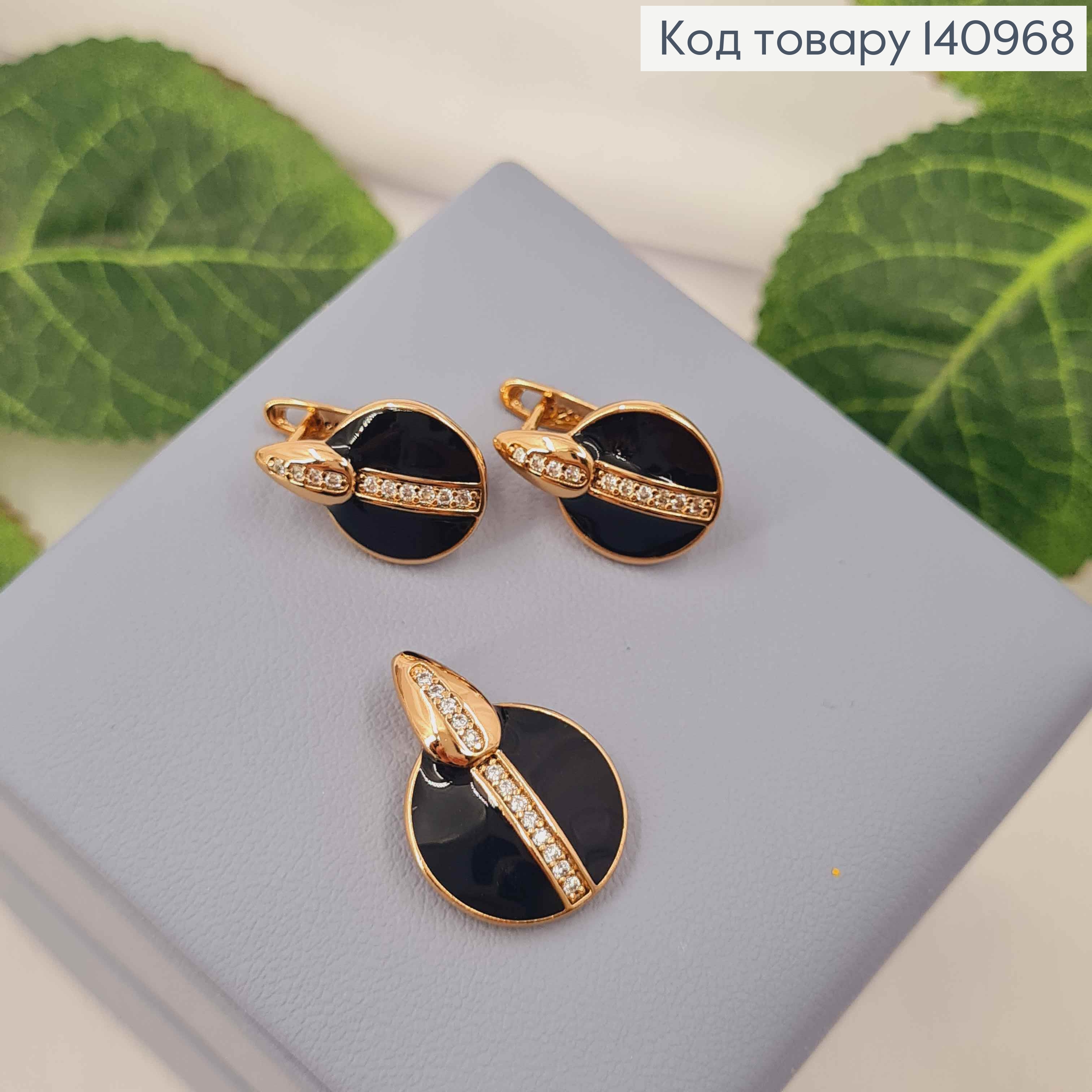 Набор, Серьги английская застежка (1,6см), Кулон (2см) с черной эмалью и камешками, Xuping 18К