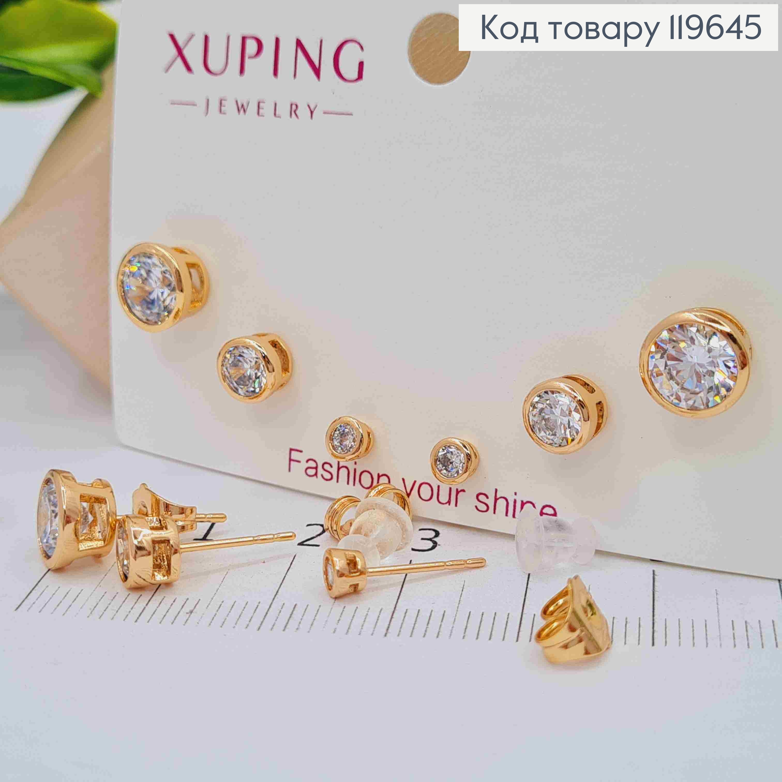 Набор: серьги гвоздики Блестящий камешек, 3 пары/уп, размеры 0,8 см; 0,6см; 0,4см, Xuping 18К